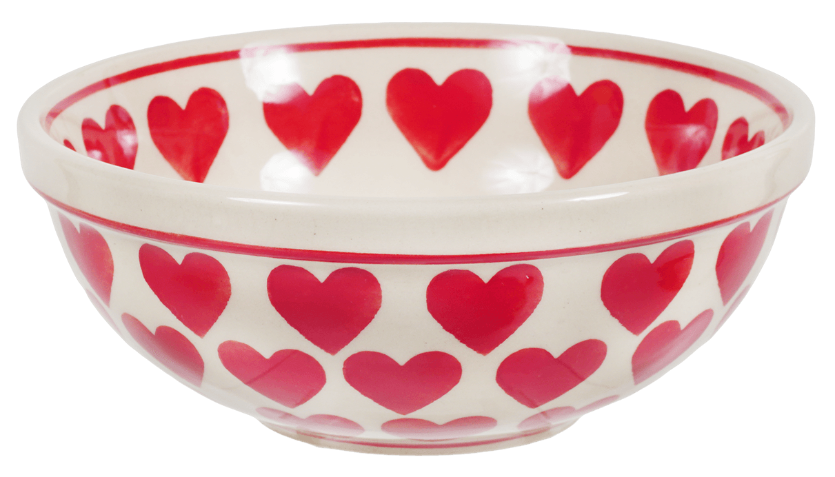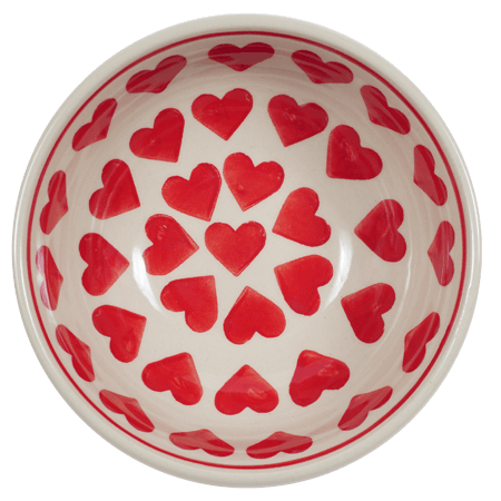 Imagine a touch of elegance and a splash of cheer in every meal with our Polish Pottery Bowl from Manufaktura, adorned in the vivacious "Whole Hearted Red" pattern. This charming 6" bowl, perfect for anything from your morning cereal to a cozy evening soup, isn't just a dish but a piece of art. Crafted in the vibrant hues of red and white, featuring delightful bands of red hearts that dance around a pristine white background, it brings a heartwarming blend of tradition and joy right to your table. Each bowl is a canvas where skilled artisans, using the time-honored "punching" technique, hand stamp each design inspired by the rich tapestry of nature.