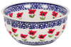 Introducing the Polish Pottery 6.5" Bowl by Manufaktura in the vibrant and eye-catching "Flower Power" pattern (JS14). These bowls are not only perfect for soups, salads, and pastas, but they can also double as small mixing bowls! The "Flower Power" pattern is a burst of color, featuring design elements incorporating Flowers and Swirls in a predominantly Red color with accents in Orange and Blue and White. It's like having a piece of art right in your kitchen!