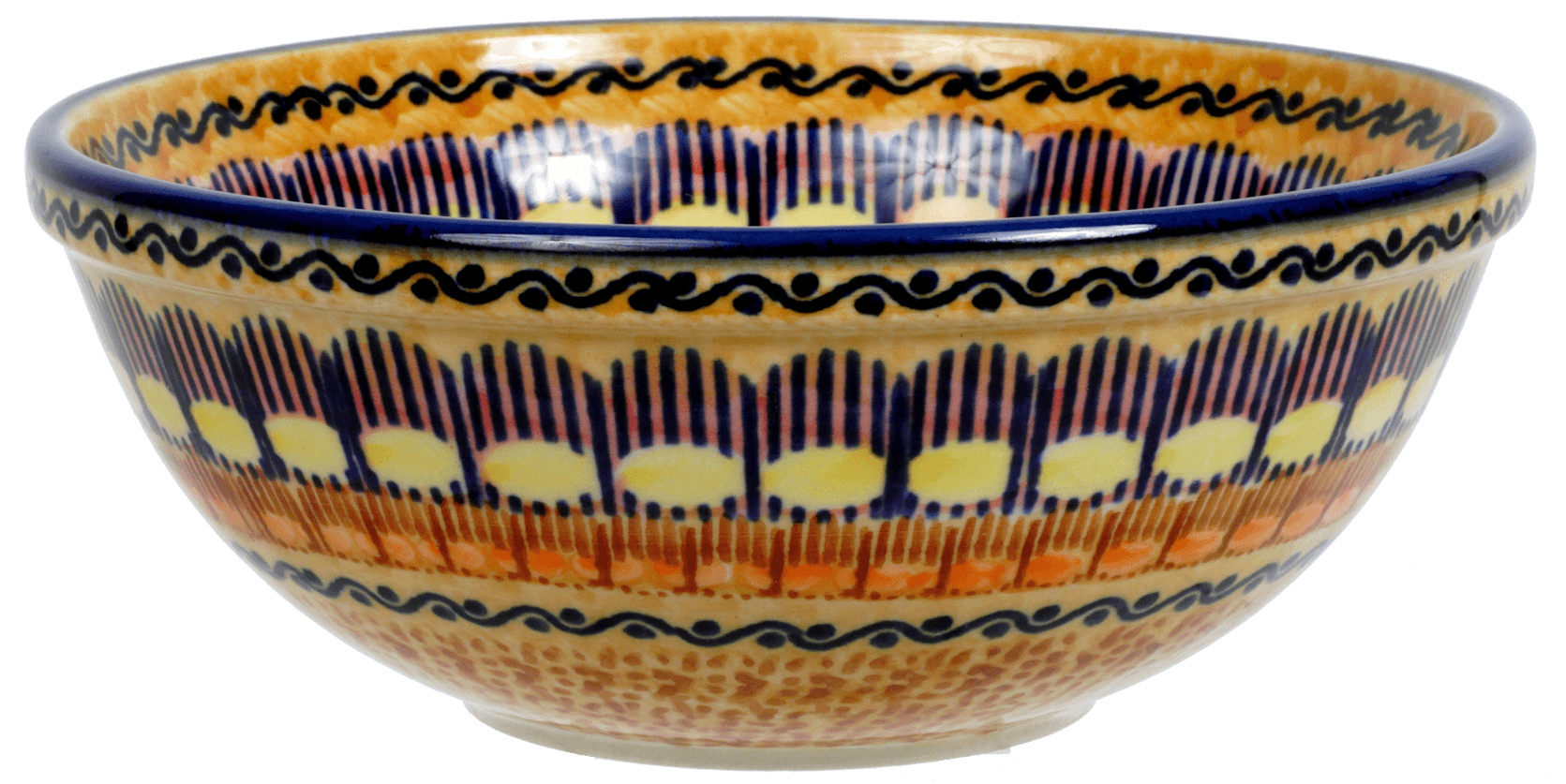 Made and hand-painted in Boleslawiec, Poland by skilled artisans, this Polish Pottery bowl is not only a functional kitchen essential but also a beautiful piece of art. Its vibrant colors and unique design will add a splash of personality to your home. Mix and match with other pieces from the collection to create stunning combinations that will impress your guests and make every meal a special occasion.