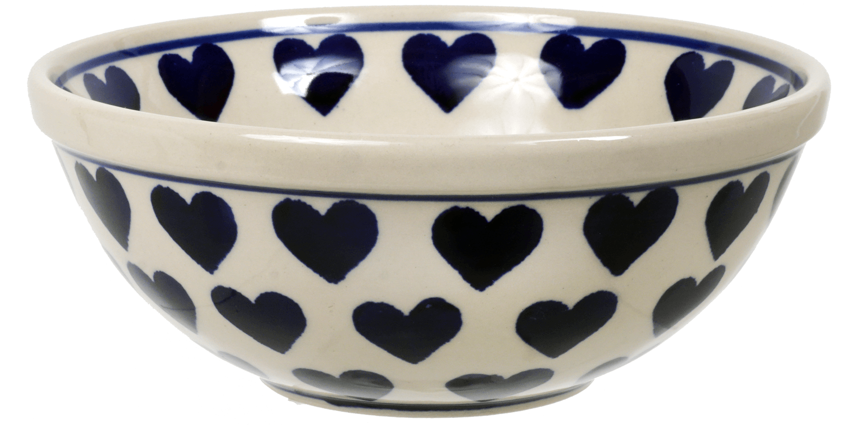 Handcrafted in the historic town of Boleslawiec, Poland, these bowls are a testament to the skill and creativity of local artisans. Using the age-old "punching" technique, each design is meticulously hand-stamped, ensuring no two pieces are exactly alike. The "Whole Hearted" pattern belongs to the Traditional category, renowned for its recognizable motifs and widespread appeal. Despite their simplicity, these patterns capture the essence of Polish artistry, making each bowl not just a dish, but a piece of art to cherish and showcase.