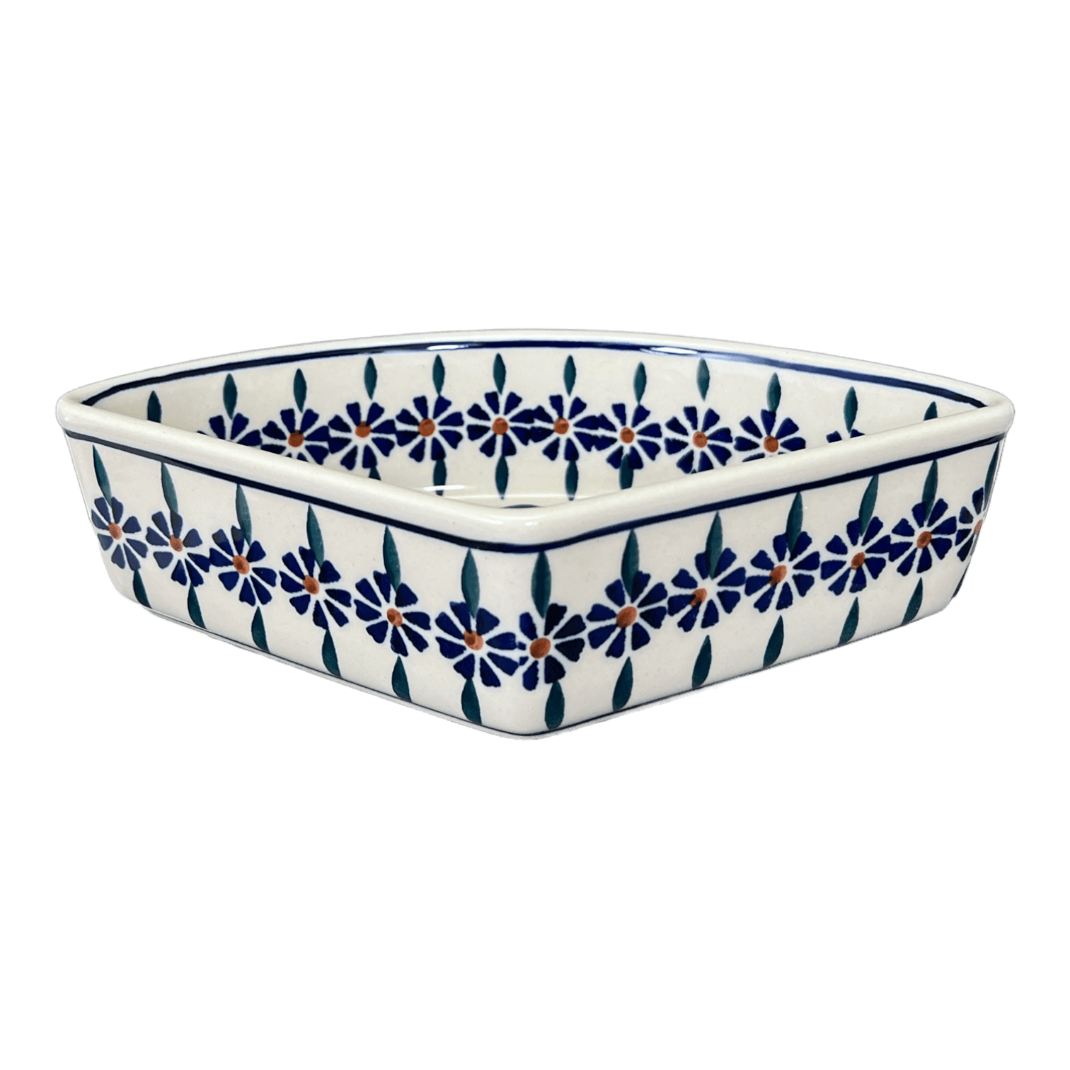Introducing the stunning Polish Pottery Wedge-Shaped Bowl by Manufaktura in the mesmerizing "Floral Peacock" pattern (54KK). Prepare to be amazed by the versatility and beauty of these bowls! Sold individually, they are not just ordinary bowls, but a canvas for your culinary creations. Perfect for side dishes, snacks, dips, nuts, or candy, these bowls are ready to elevate your dining experience to new heights.
