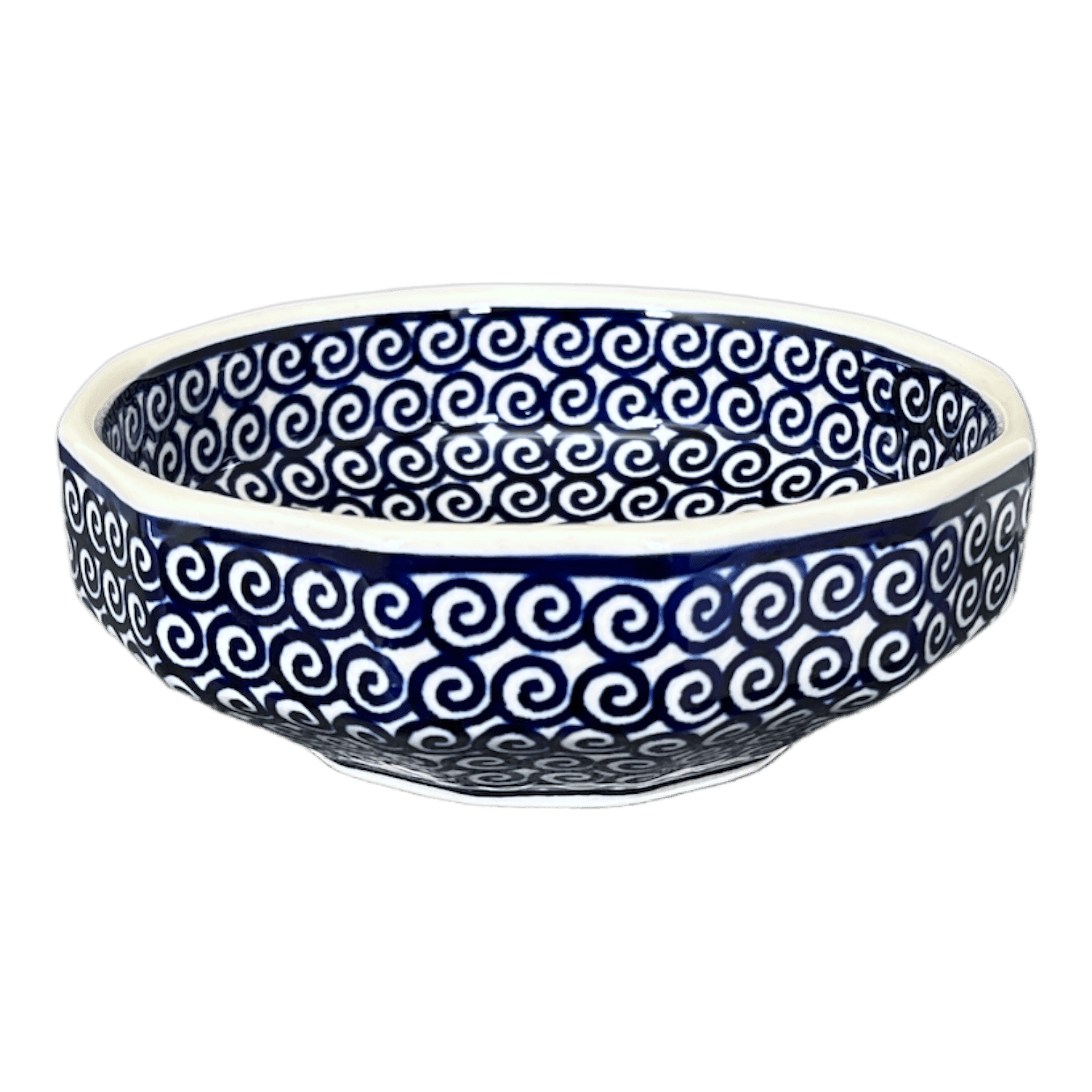 Immerse yourself in the vibrant swirls and geometric elegance of the "Riptide" pattern, beautifully showcased on the Manufaktura Multiangular Polish Pottery Bowl. Measuring a versatile 5 inches, this shallow, multi-angular marvel is the perfect vessel for an array of uses, whether you're dishing up your favorite dips, scooping up some creamy ice cream, or corralling your cherished jewelry. Each piece, hand-painted and crafted in the heart of Boleslawiec, Poland, brings a touch of artisanal charm right into your living space.