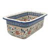 Imagine whipping up your favorite batch of muffins or cupcakes in a piece of art! The Polish Pottery Muffin Pan by Manufaktura, measuring a perfect 8.5" x 12.5", isn't just any ordinary bakeware. This exquisite piece is adorned with the vibrant "Ruby Bouquet" pattern, a visual feast of predominantly red flowers, punctuated with playful blue and gold accents, all set against a crisp white background. Each pan is a canvas, showcasing tiny blue and small orange flowers scattered across, with a charming chain of blue flowers lining the edges. It’s not just a muffin pan; it’s a statement piece for your kitchen!