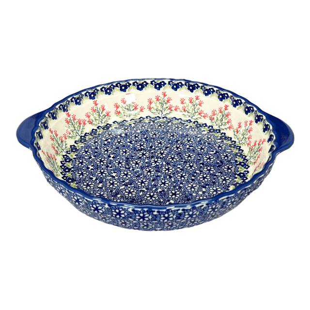 Imagine pulling your next pie from the oven, cradled in a masterpiece of pottery that's as delightful to look at as your pie is to eat! Meet the Polish Pottery Baker, Round Pie Plate with Handles, measuring a generous 9.75 inches. Crafted by the esteemed artisans at Manufaktura, this pie plate is not just a baking dish but a portal to a world of culinary artistry. The "Burning Thistle" pattern is a canvas of vibrant reds, calming blues, and refreshing greens, creating a floral dance on a pristine white background. Each piece, a testament to the skill of its creator, brings the allure of the Polish countryside right to your kitchen.