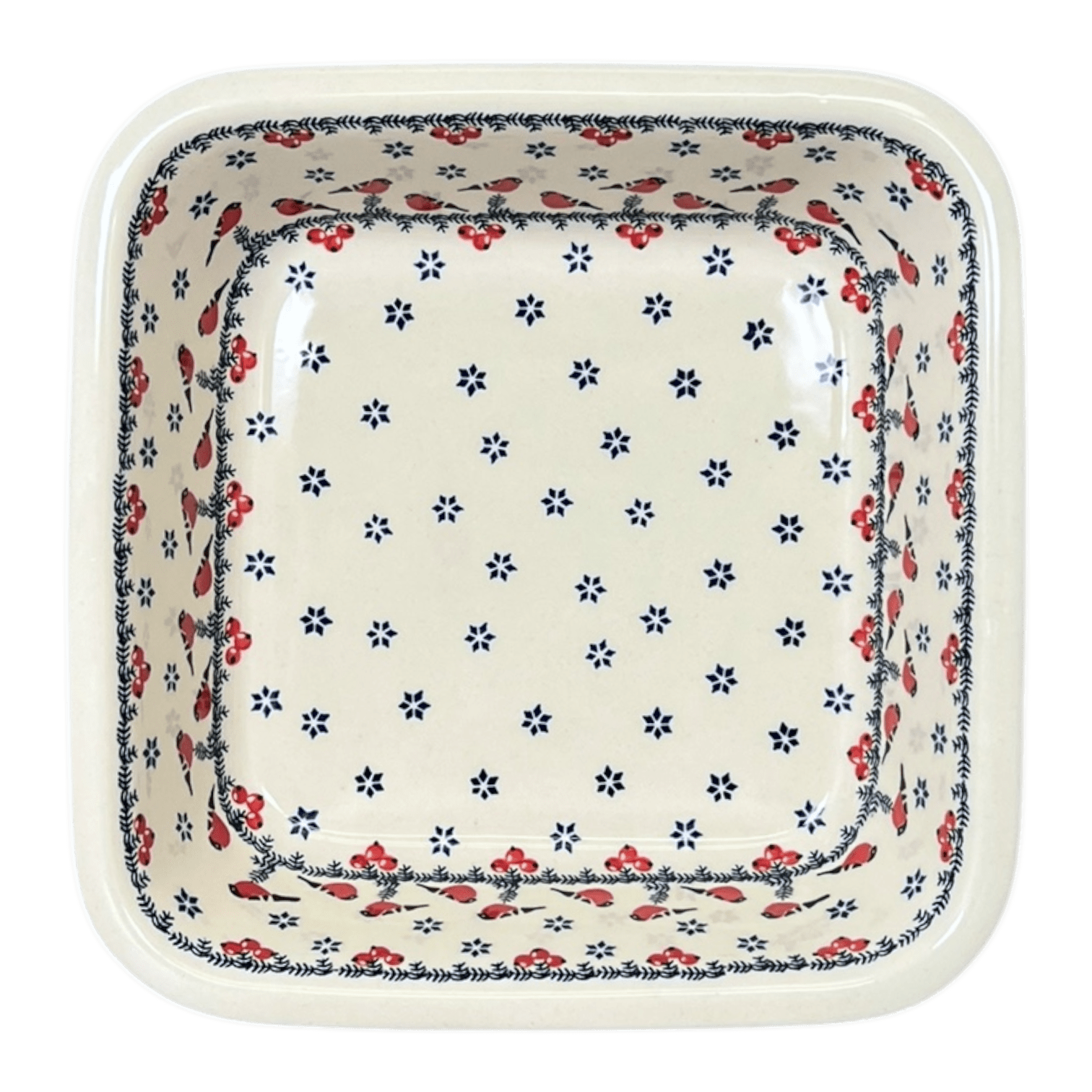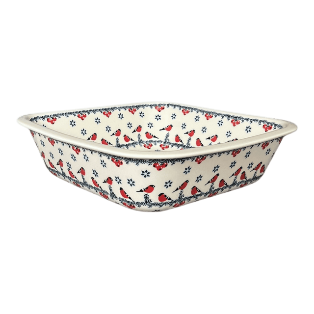 Imagine a canvas of vibrant hues and intricate designs that bring the festive spirit right into your kitchen. Enter the world of the Polish Pottery Baker, a masterpiece from Manufaktura, adorned in the enchanting "Red Bird" pattern. This 11.5" square deep baker is not just a utensil but a celebration of artistry, featuring playful red birds and charming blue snowflakes dancing around a simple evergreen wreath studded with red berries. Perfectly sized for hearty family casseroles or that sumptuous lasagna, it promises to transform your culinary creations into centerpieces of your dining table.