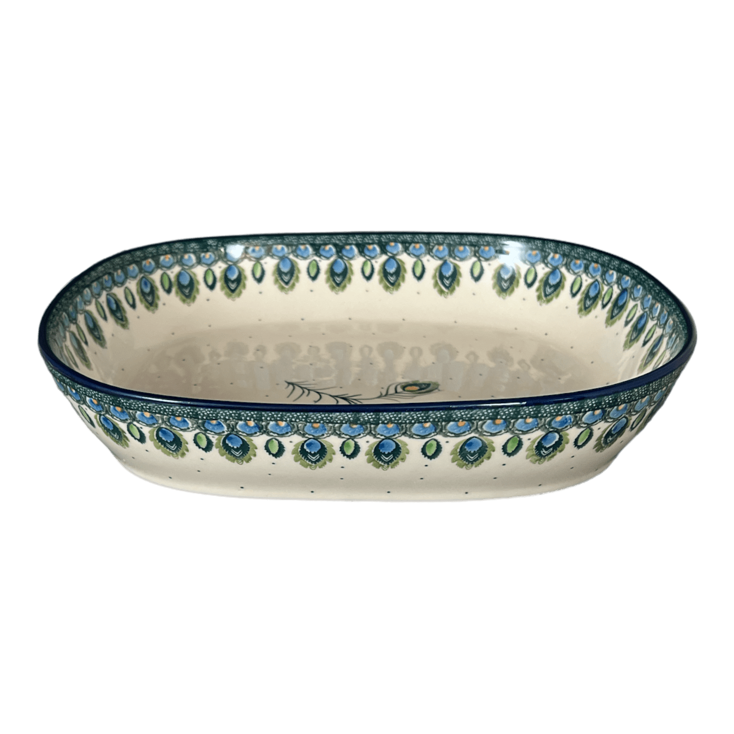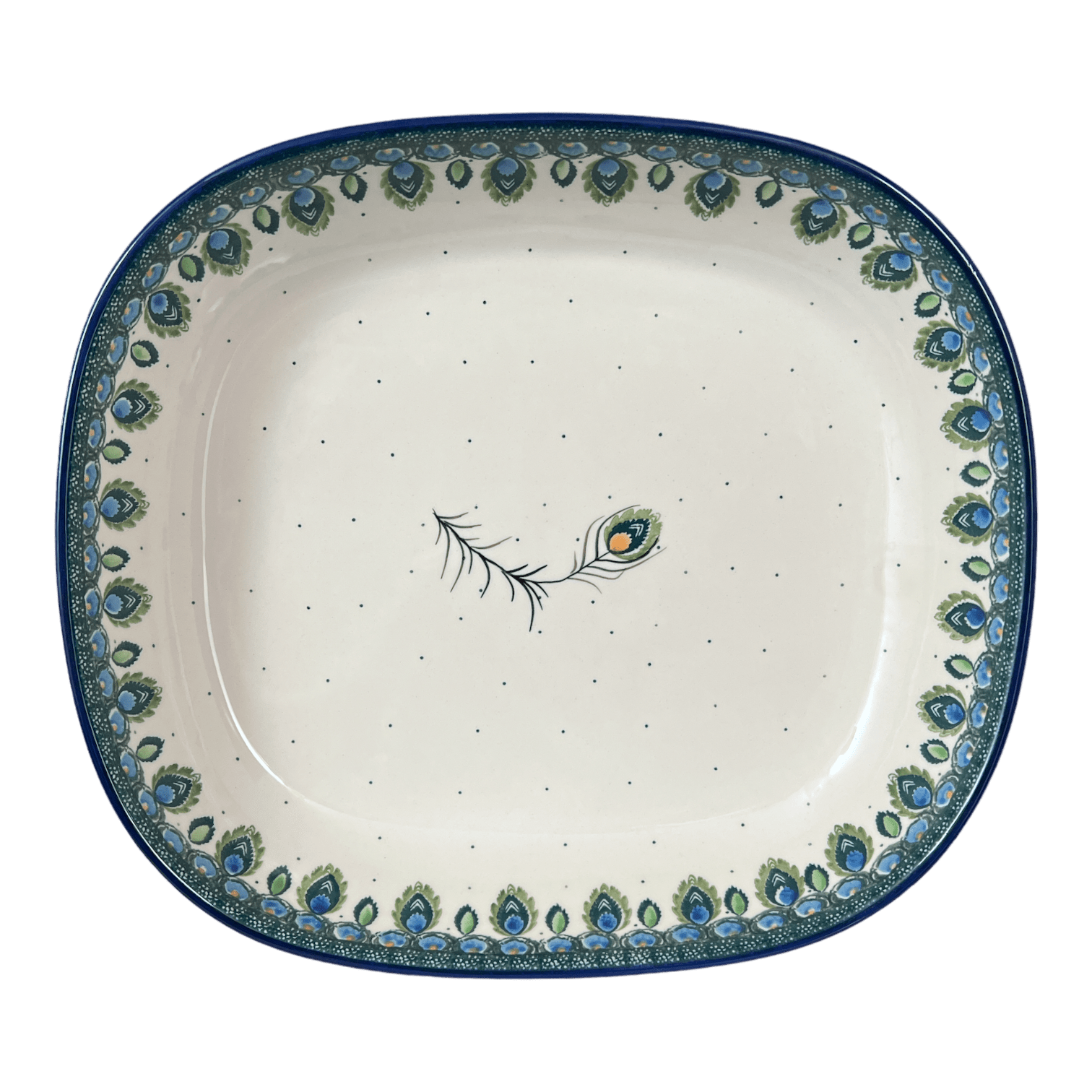 Baker, Rectangular, 10.5" x 12" in "Peacock Plume" by Ceramika Artystyczna | A156-2218X is backordered and will ship as soon as it is back in stock.