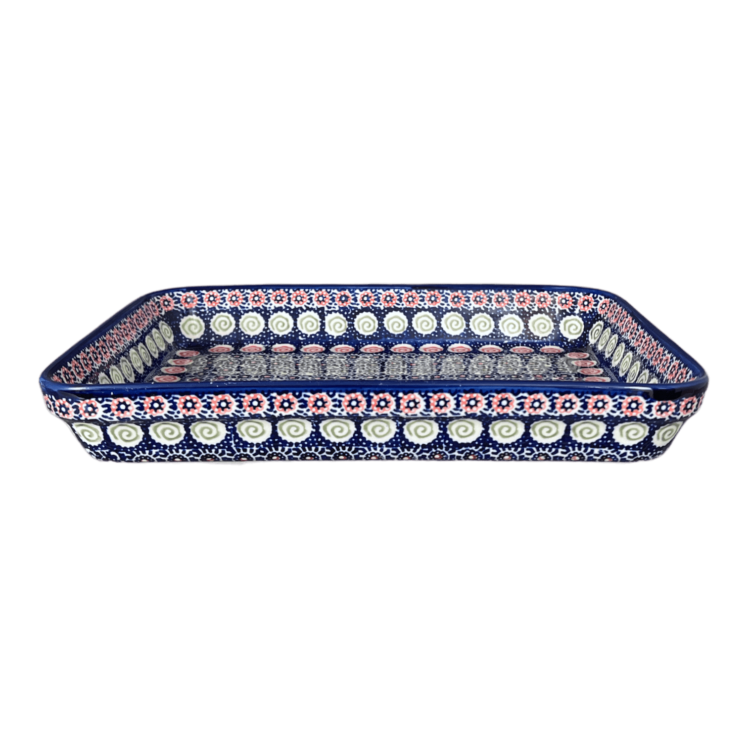 Not only is this rectangular baker a work of art, but it is also a practical kitchen tool. With dimensions of 10" x 13" x 1.75" h, it provides ample space for your culinary creations. Made and hand-painted in Boleslawiec, Poland by skilled artisans, it is a testament to the rich heritage of Polish pottery. Polish Pottery is known for its durability, chip resistance, and high-quality materials. It is also food and beverage safe, making it a reliable choice for all your cooking and serving needs.