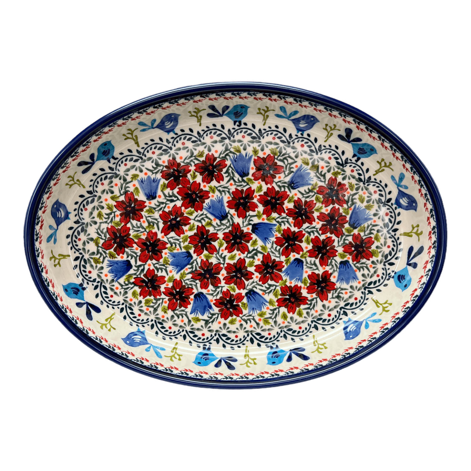 Baker, Oval, 12.25" in "Circling Bluebirds" by Zaklady | Y350A-ART214 is backordered and will ship as soon as it is back in stock.