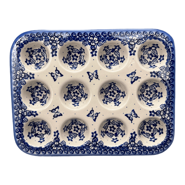 Introducing the charming Polish Pottery Muffin Pan, 12 Cup Mini, Andy (NDA169) - a true masterpiece in the "Butterfly Blues" pattern that will turn your baking into an art form! Crafted in the quaint town of Boleslawiec, Poland, by the hands of skilled artisans, this delightful mini muffin pan is not just a baking tool but a piece of tradition. With its vibrant blue butterflies and delicate flowers dancing across a pristine white background, each pan brings a splash of joy and color to your kitchen. The glossy finish isn’t just for show; it ensures that your scrumptious muffins and cupcakes slide out effortlessly, looking as perfect as they taste!