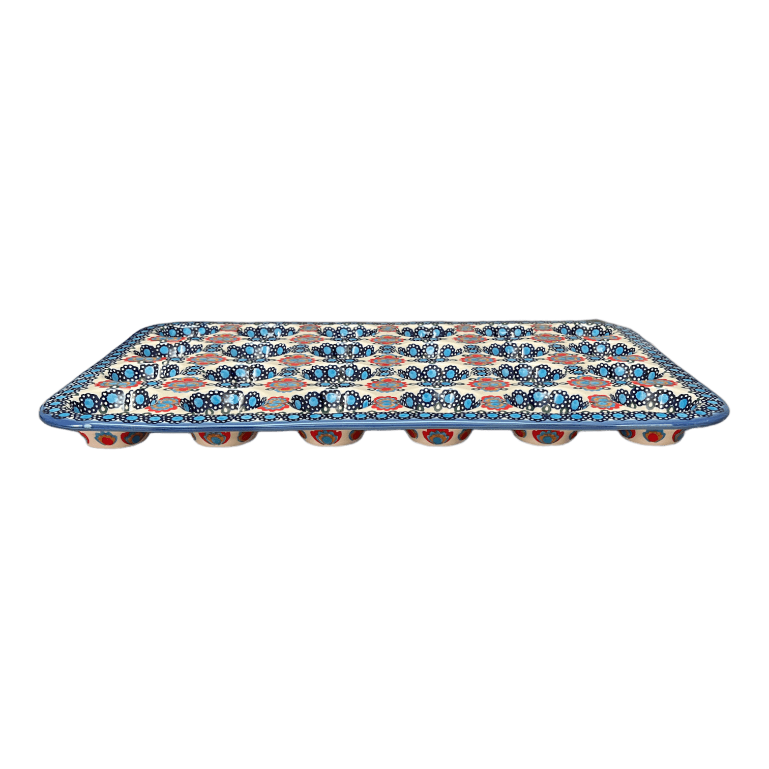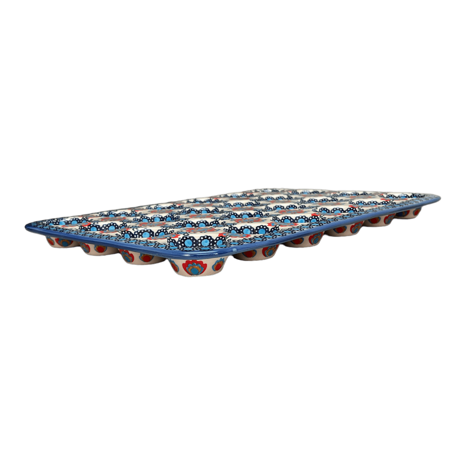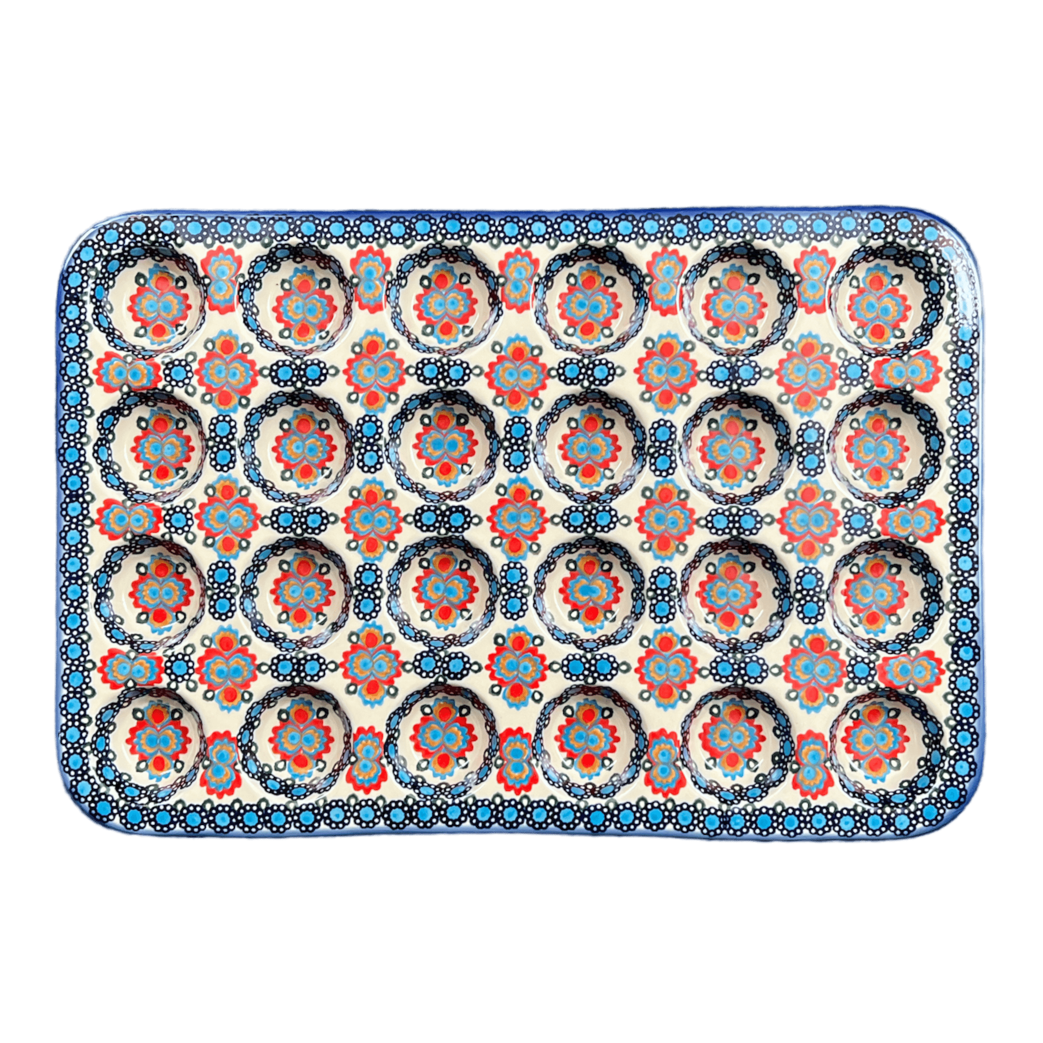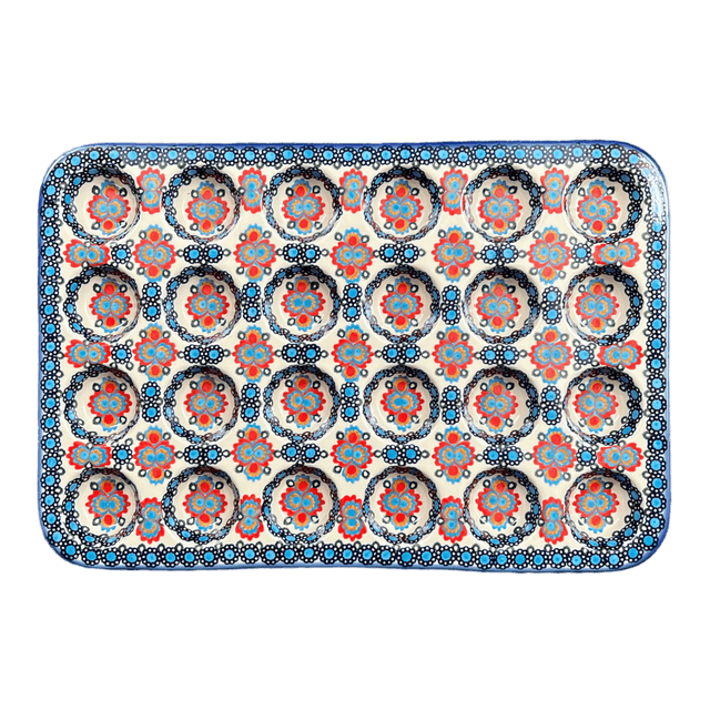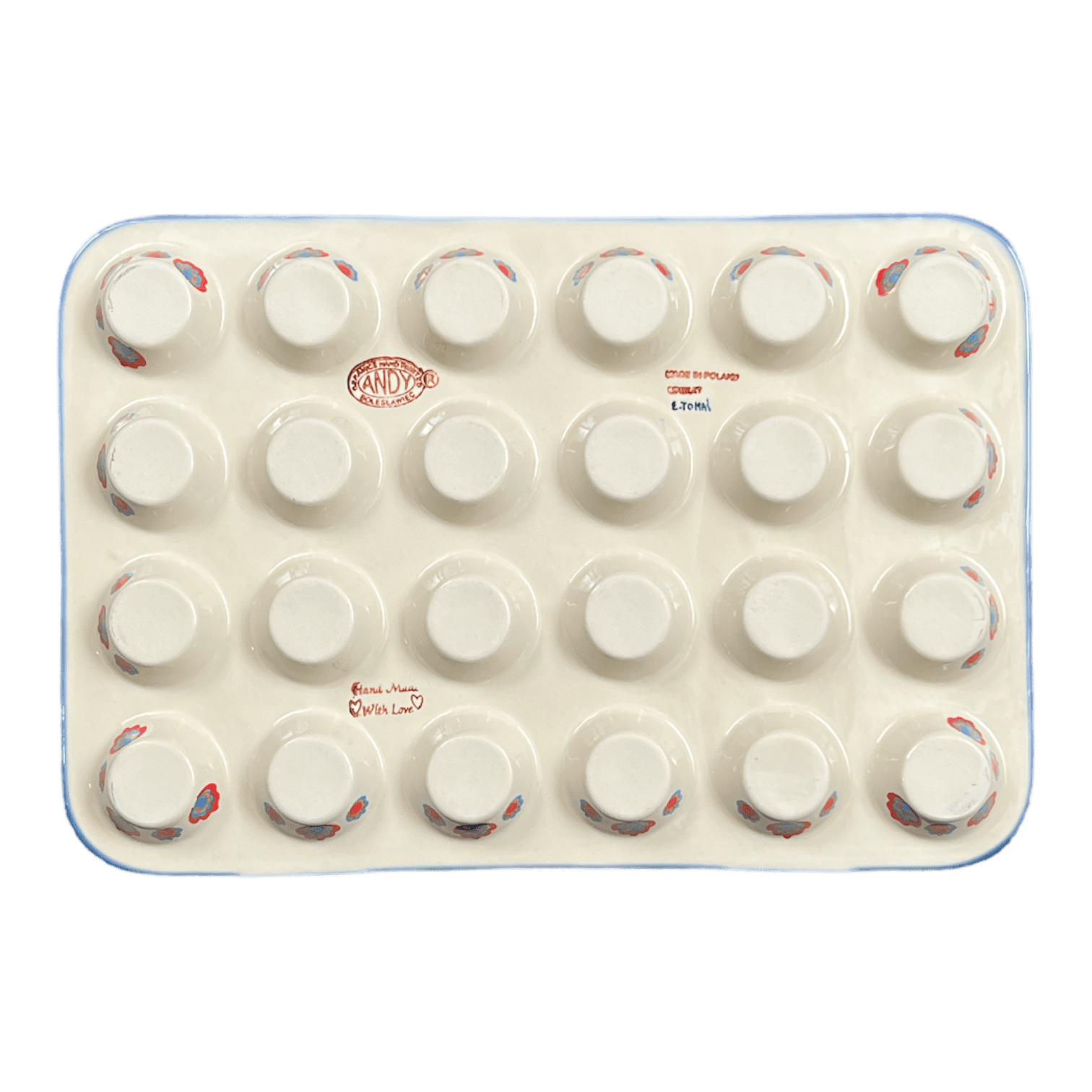 Imagine transforming your kitchen into a canvas of vibrant colors and intricate designs with the Polish Pottery Muffin Pan, crafted by the renowned artisan Andy in the delightful "Polish Bouquet" pattern. This 24-cup mini muffin pan, measuring an impressive 17" x 11.25", is not just a baking tool but a piece of art. Each muffin cup promises to cradle your batter, ensuring that your muffins or cupcakes bake evenly, come out moist, and infused with flavor. Thanks to the high-gloss glaze, your baked goods will slide out effortlessly, ready to dazzle your taste buds and your guests!