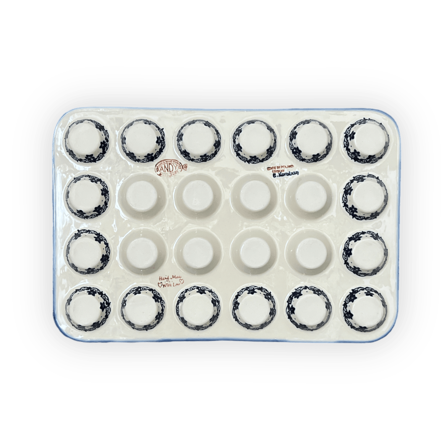 Crafted in the quaint town of Boleslawiec, Poland, this durable and versatile pan is more than just a baking accessory; it's a piece of history, meticulously painted by hand and built to last. Safe for use in the dishwasher, microwave, freezer, and oven (up to 425 degrees), this pan is designed to meet the demands of a modern kitchen while maintaining its timeless appeal. Whether you're whipping up a batch of bite-sized treats for a party or experimenting with new recipes, the Polish Pottery Muffin Pan by Andy is your trusty companion, ensuring that each culinary creation is as delightful to look at as it is to eat. Embrace the charm of Polish pottery and make your kitchen the heart of creativity and joy!