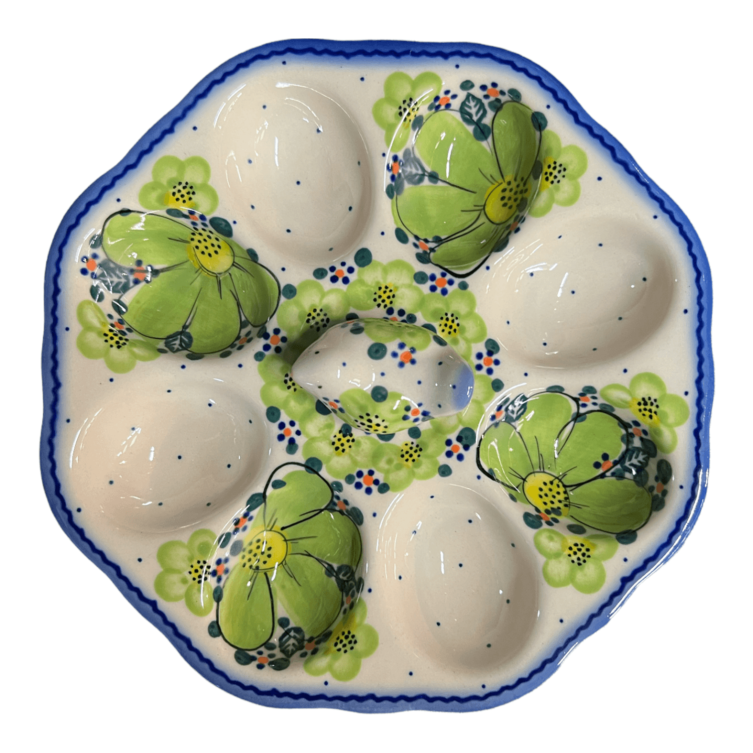 Plate, Round, Egg Plate, 7.25" in "Green Daisy Spiral" by Galia | GT11-UZK is backordered and will ship as soon as it is back in stock.