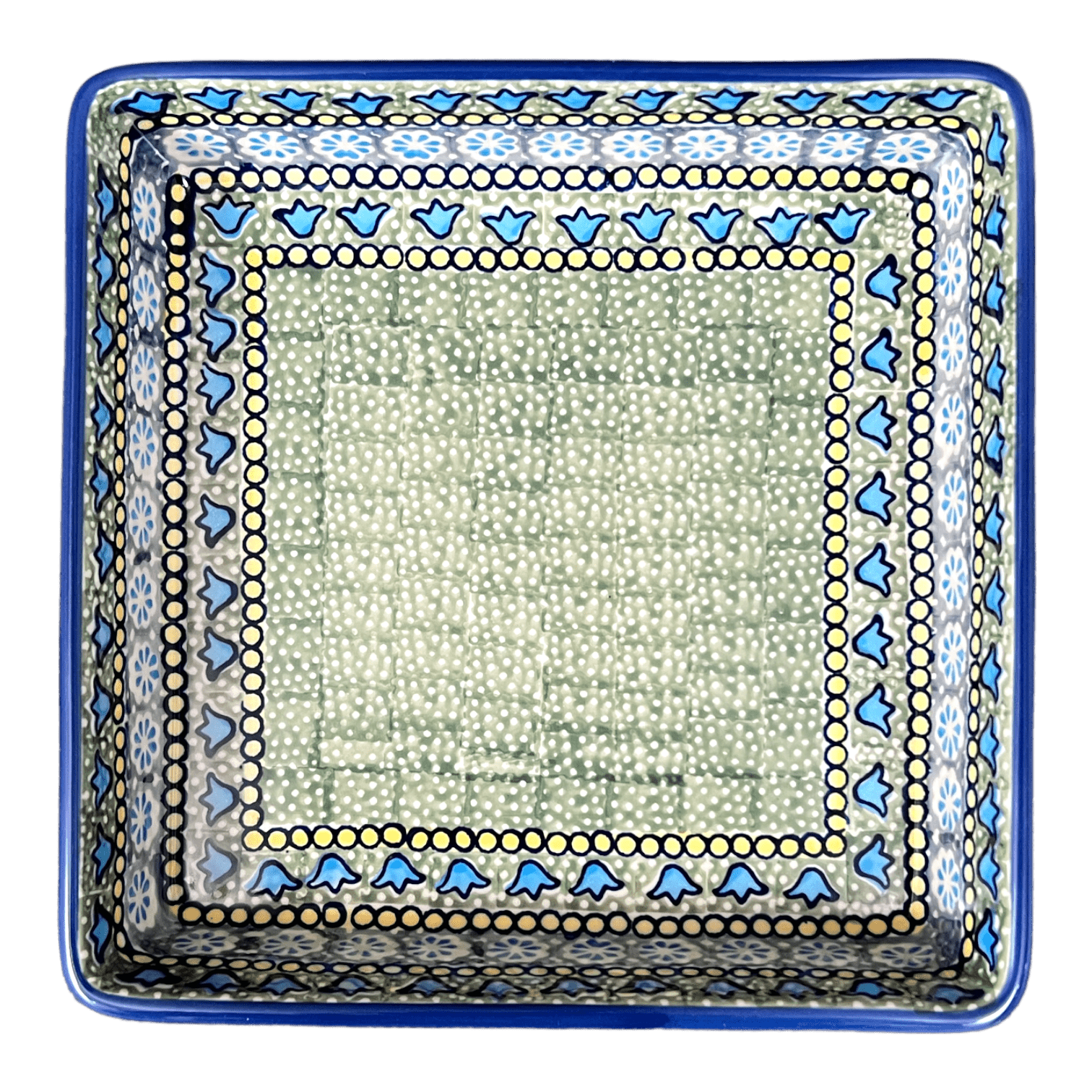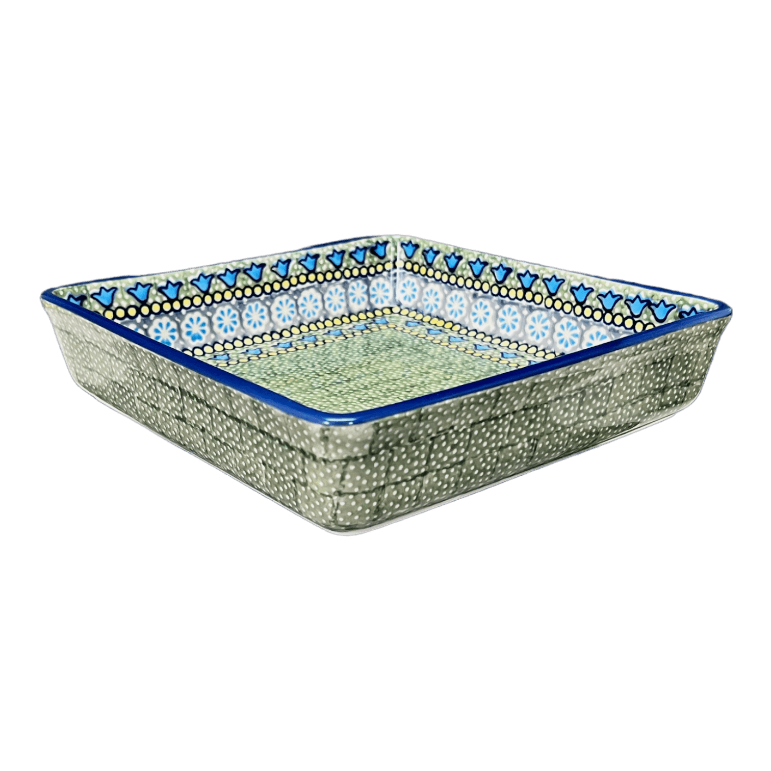 Introducing the Polish Pottery 8" Square Baker by Manufaktura in the captivating "Blue Bells" pattern (KLDN). This square shallow baker is not just your ordinary bakeware; it is a vessel of culinary magic that effortlessly creates beautiful brownies and cakes. With its easy cleaning, easy cooking, and everlasting beauty, this Polish Stoneware baker is a must-have for every kitchen.