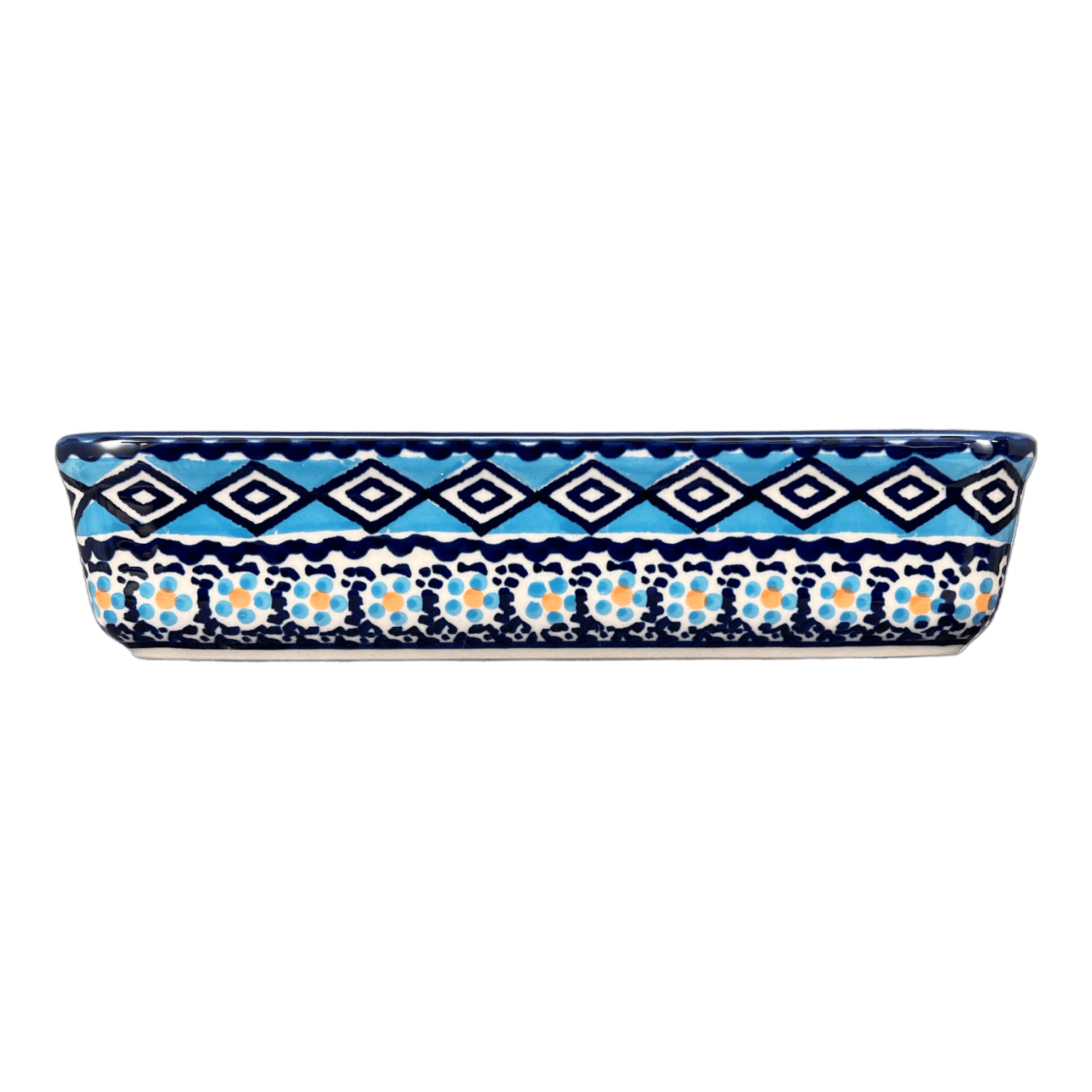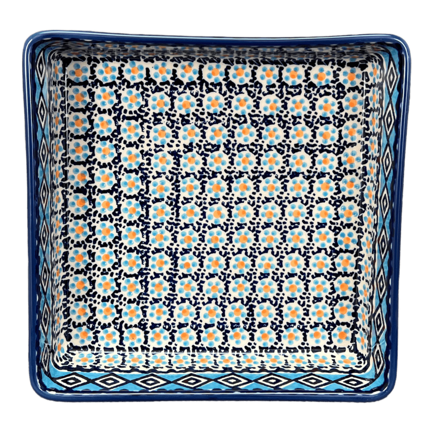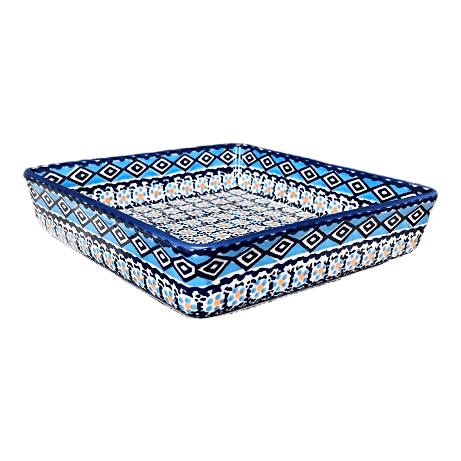 Introducing the Polish Pottery 8" Square Baker by Manufaktura in the captivating "Blue Diamond" pattern (DHR). This delightful square shallow baker is not only a kitchen essential, but also a work of art that will make your brownies and cakes look absolutely stunning. With its easy cleaning, easy cooking, and everlasting beauty, this Polish Stoneware baker is a must-have in every kitchen.
