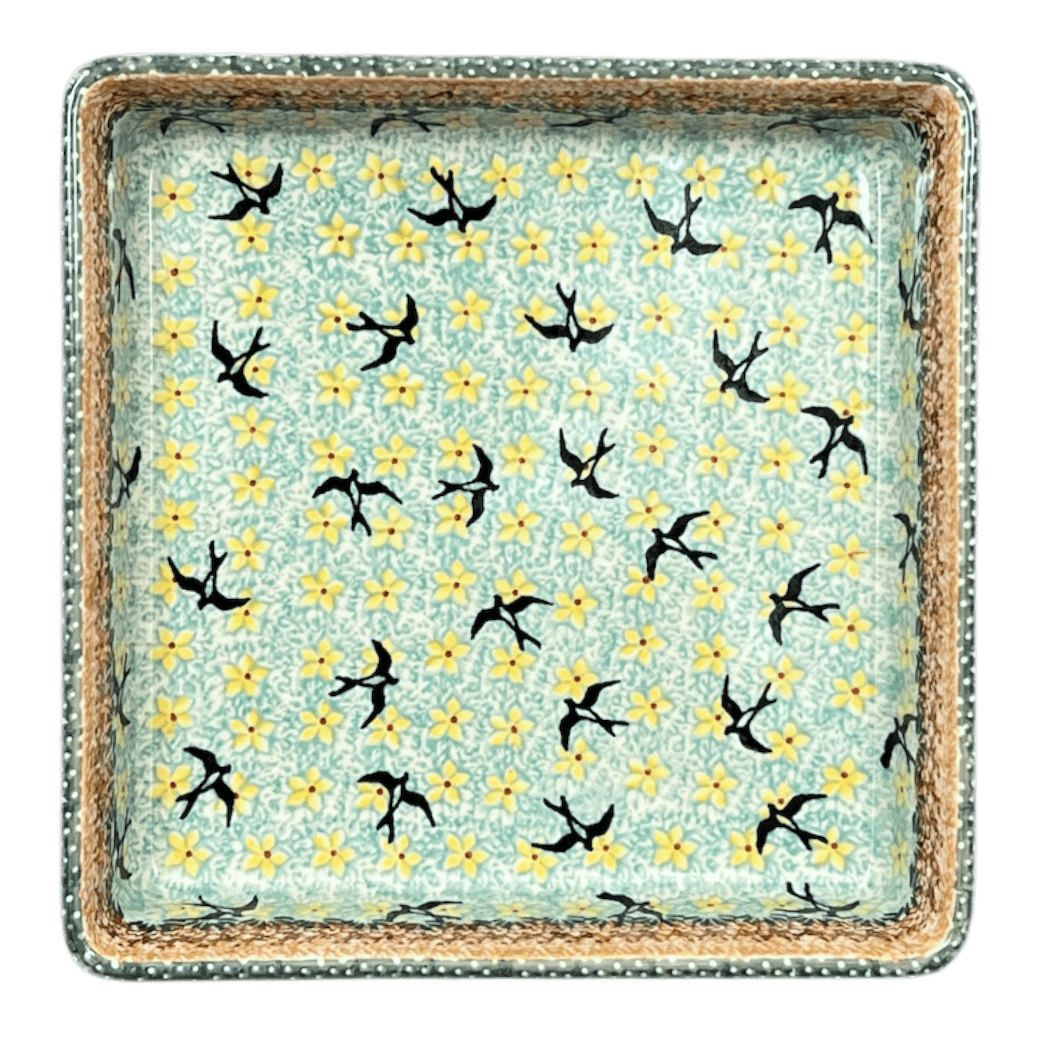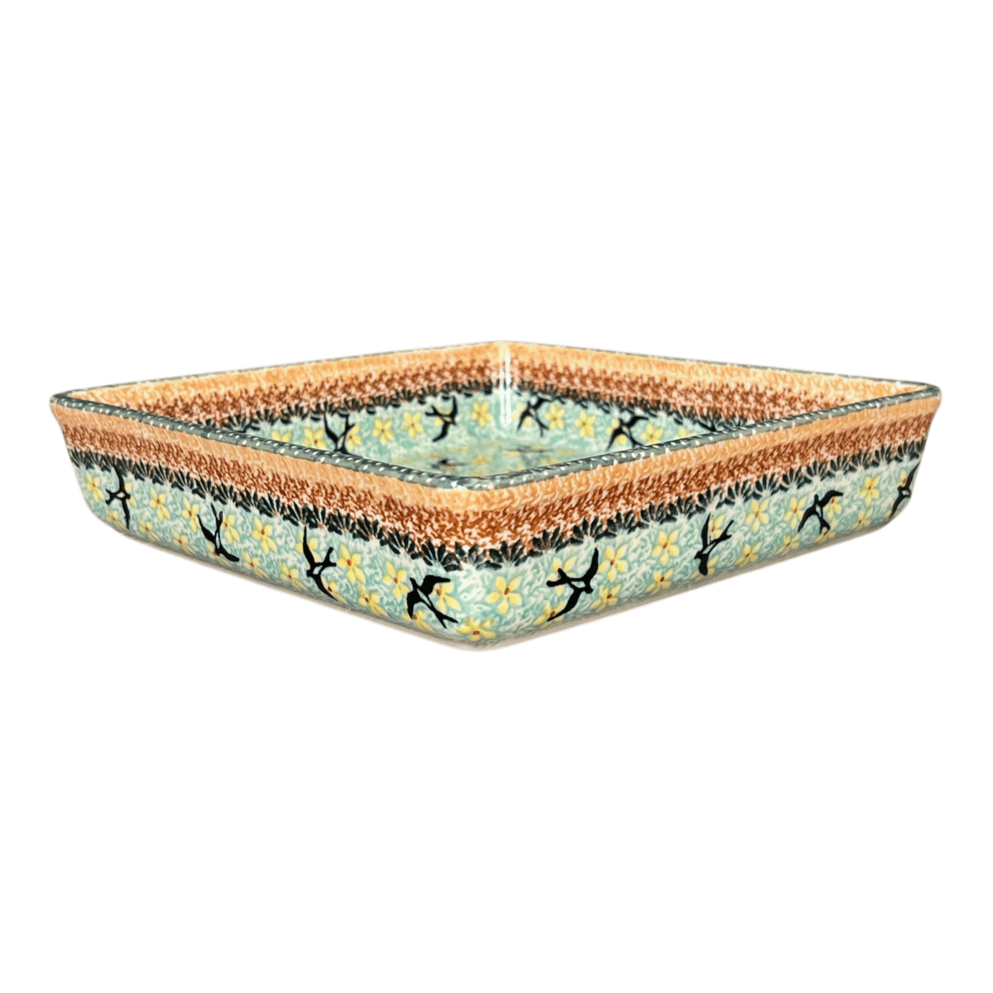 Introducing the Polish Pottery 8" Square Baker by Manufaktura in the captivating "Capistrano" pattern (WK59). This delightful square shallow baker not only adds a touch of elegance to your kitchen but also makes baking brownies and cakes a breeze. With its easy cleaning, easy cooking, and everlasting beauty, this Polish Stoneware is a must-have for any culinary enthusiast.