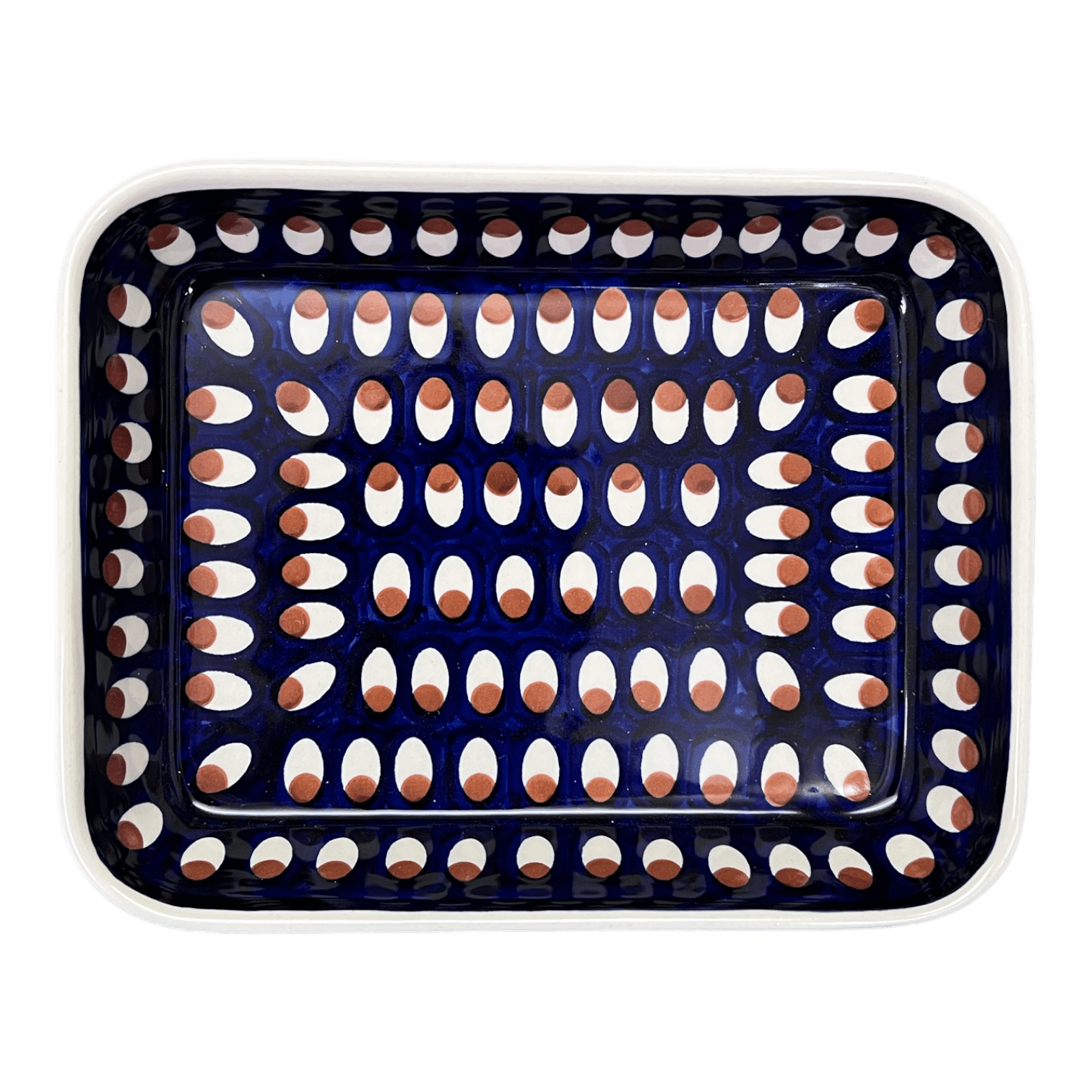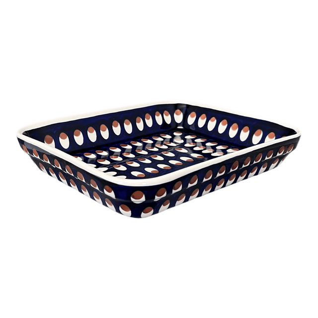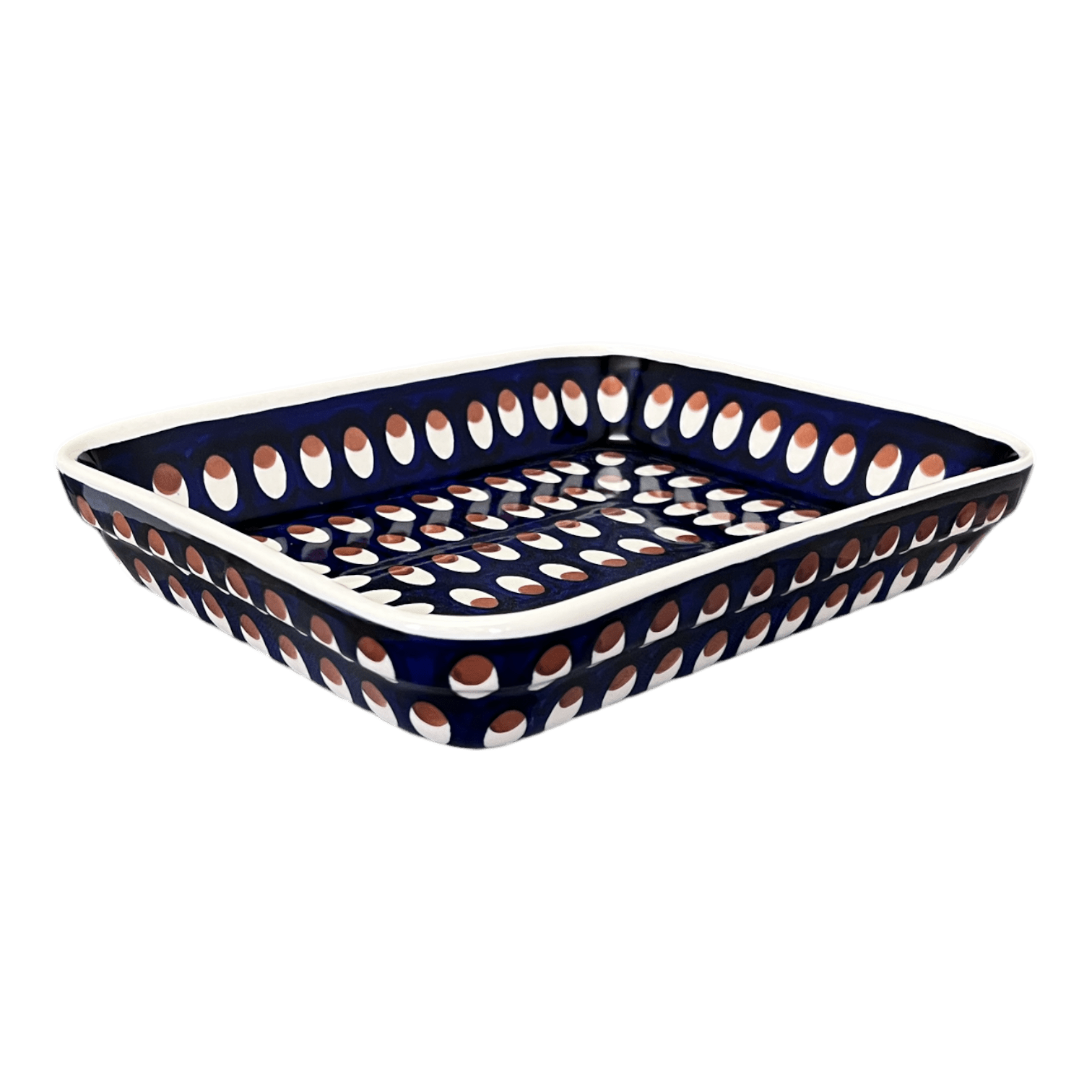 Not only is the Rectangular Baker functional, but it is also a work of art. The "Pheasant Feathers" pattern features stunning design elements that incorporate feathers in a predominantly blue color, with accents in brown and white. It's like having a piece of Polish heritage right in your own home!