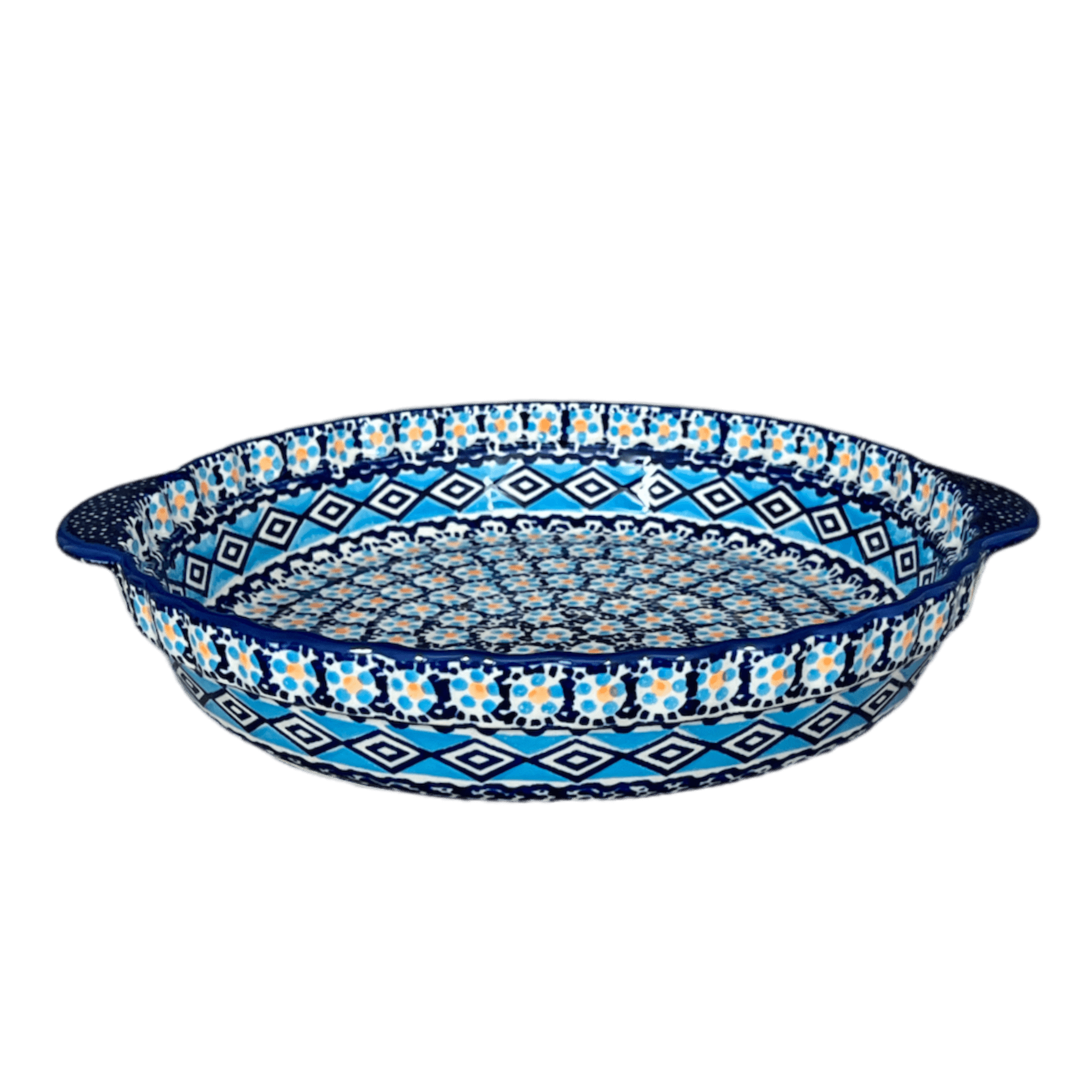 Baker, Round, Pie Plate, Handles, 9.75" in "Blue Diamond" by Manufaktura | Z148U-DHR
