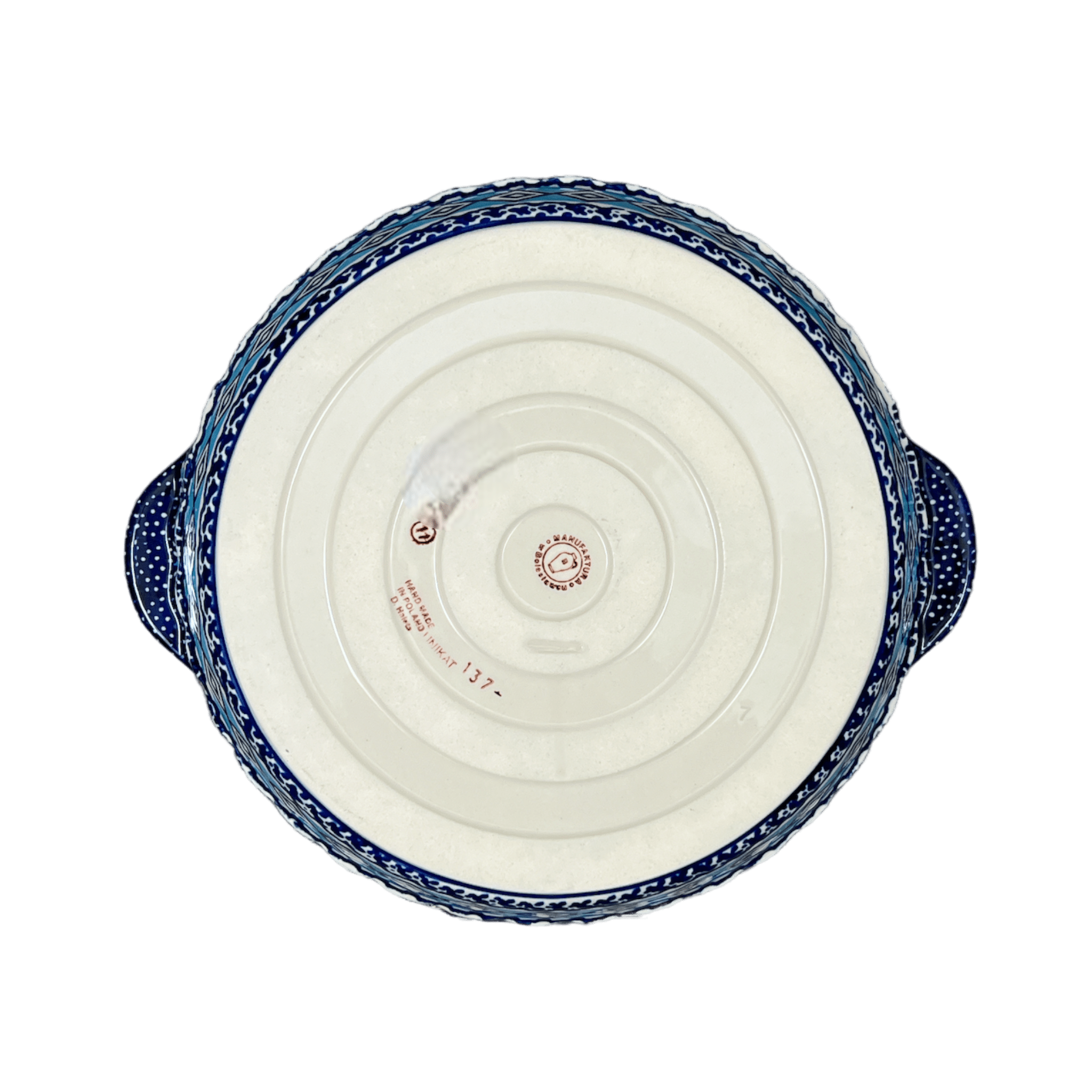 But the allure of this pie plate doesn't stop at its beauty. Each piece is a unique canvas, showcasing the Unikat level of artistry, a term that translates to "Unique" from Polish. Unikat pieces are the pinnacle of Polish pottery, meticulously hand-painted by a select group of skilled artisans who have mastered their craft to an extraordinary degree. These artisans are encouraged to express their creativity more freely, resulting in designs that feature intricate details and a rich palette of colors. The "UNIKAT" stamp on the bottom of each piece is a testament to its exclusivity and authenticity, marking it as a distinctive creation from the Manufaktura workshop. This level of craftsmanship not only makes the pie plate a functional kitchen item but also a collector's item that brings a touch of artisanal charm to your home.