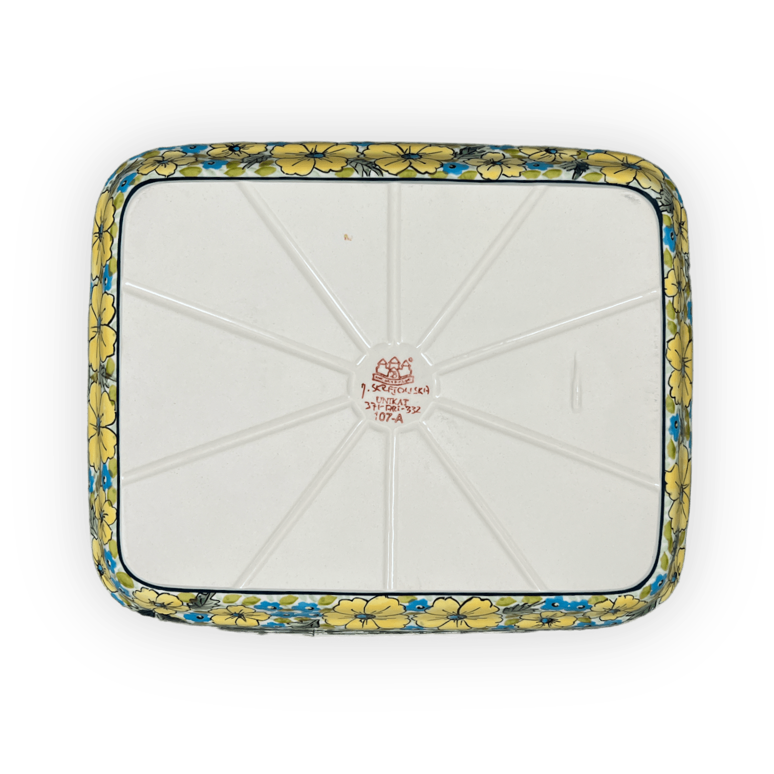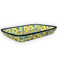 Step into a world where culinary art meets timeless tradition with the exquisite Polish Pottery Baker from Zaklady. Imagine pulling a perfectly golden lasagna from the oven, baked evenly in a stunning 9" x 11.75" rectangular dish adorned with the vibrant "Sunny Meadow" pattern. This delightful design features large, sunny yellow flowers and charming small blue flowers, set against a lush green, leafy backdrop. Not just a baking dish, but a centerpiece that brings the joy of spring into your kitchen year-round!