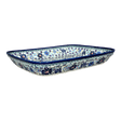 Imagine serving your next dinner party feast in a masterpiece that's as visually striking as it is practical! Introducing the Zaklady Polish Pottery Baker in the vibrant "Floral Explosion" pattern, a stunning display of craftsmanship from the oldest and largest manufacturer of Polish pottery, Zaklady Ceramiczne. This rectangular baker, measuring a generous 10.5" x 13", is a canvas of rich, dark blue flowers with lively orange centers, complemented by a medley of smaller flowers in soothing shades of blue, all nestled against a backdrop of lush green leaves and bordered in the same verdant hue. It's not just a baking dish; it's a conversation starter, perfect for lasagnas, cobblers, or your signature side dishes!