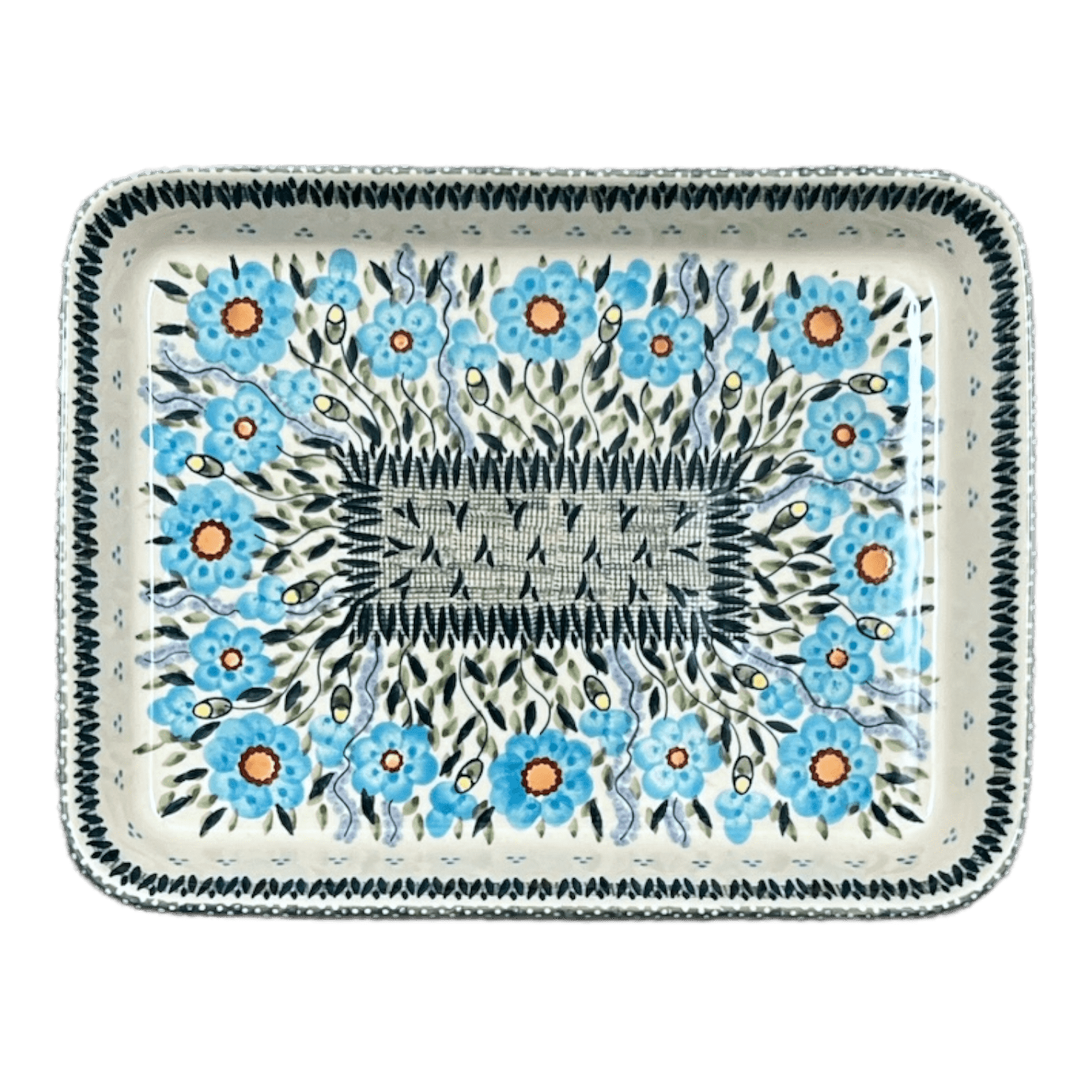 Baker, Rectangular, Shallow, 9" x 11" in "Baby Blue Blossoms" by Manufaktura | P104S-JS49 is backordered and will ship as soon as it is back in stock.