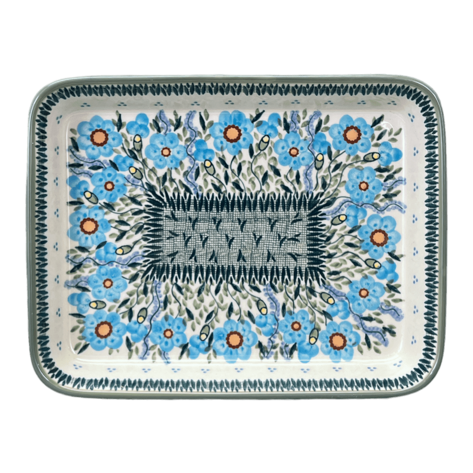 Baker, Rectangular, Shallow, 9" x 11" in "Baby Blue Blossoms - Solid Rim" by Manufaktura | P104S-JS49A is backordered and will ship as soon as it is back in stock.