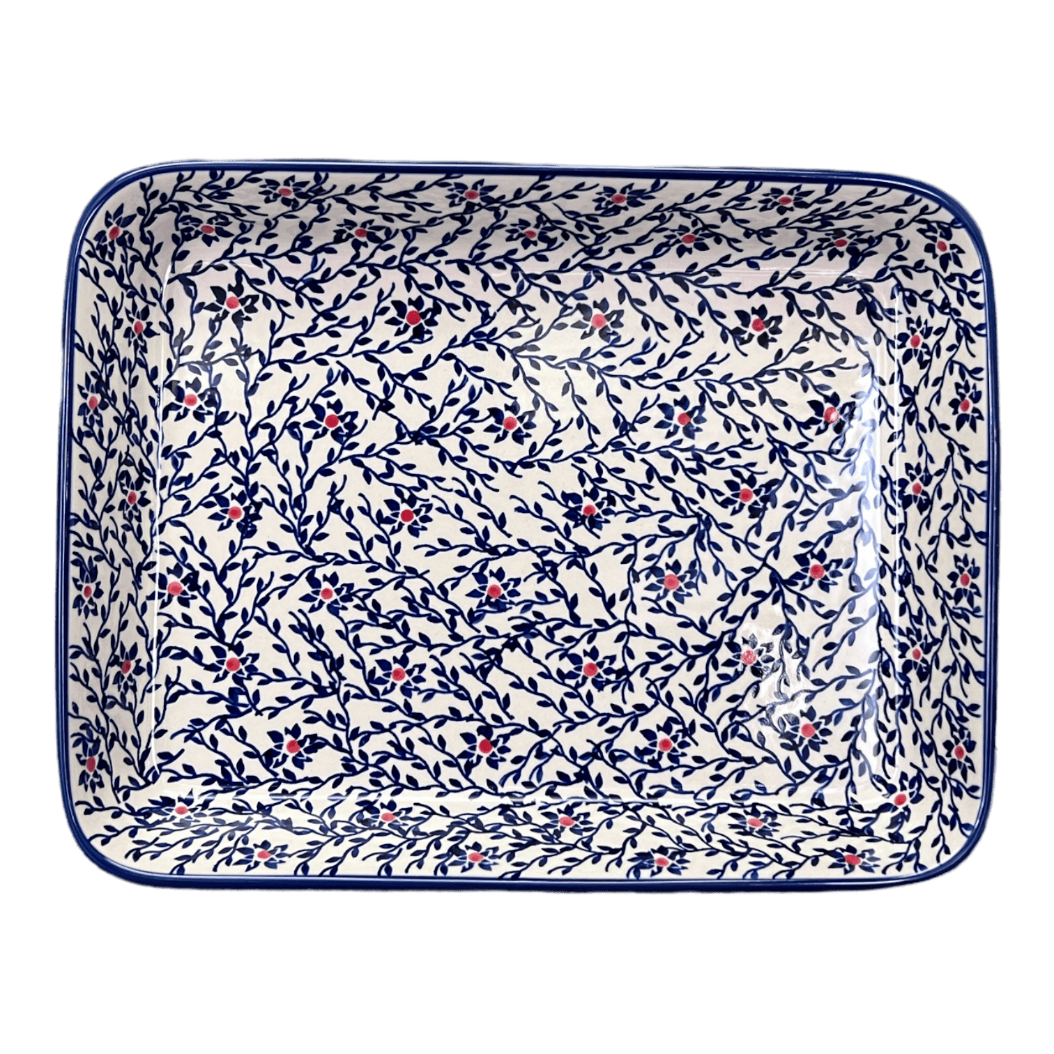 Introducing the Polish Pottery 9" x 11" Rectangular Baker by Manufaktura in the mesmerizing "Blue Canopy" pattern (IS04). This versatile baker is not just your ordinary kitchenware; it's a culinary masterpiece waiting to be discovered. Whether you're baking a delectable batch of brownies for a small crowd or preparing a variety of mouthwatering dishes, this baker is here to elevate your cooking game.