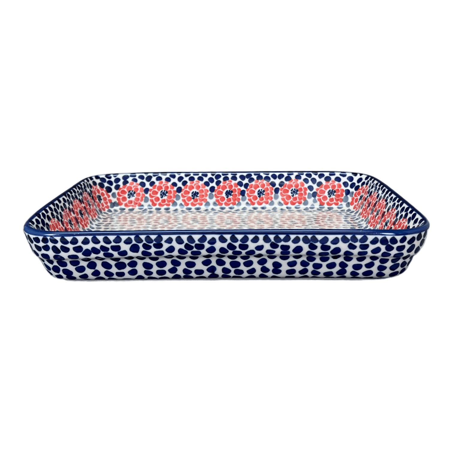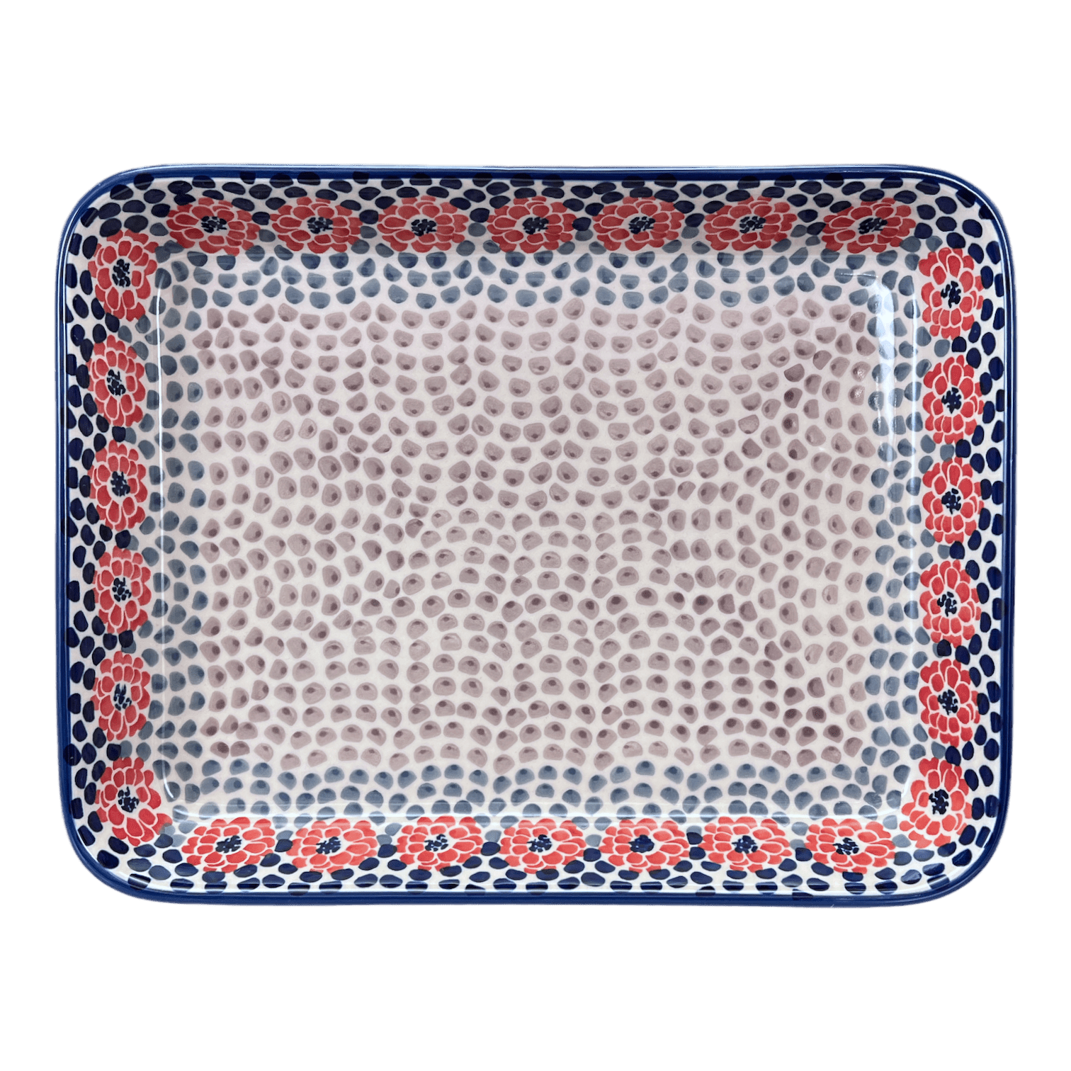 Introducing the Polish Pottery 9" x 11" Rectangular Baker by Manufaktura in the exquisite "Falling Petals" pattern (AS72). This stunning piece of culinary art is not only functional but also a vibrant addition to your kitchen. Whether you're baking a delectable brownie for a small gathering or creating a mouthwatering side dish, this rectangular baker has got you covered.