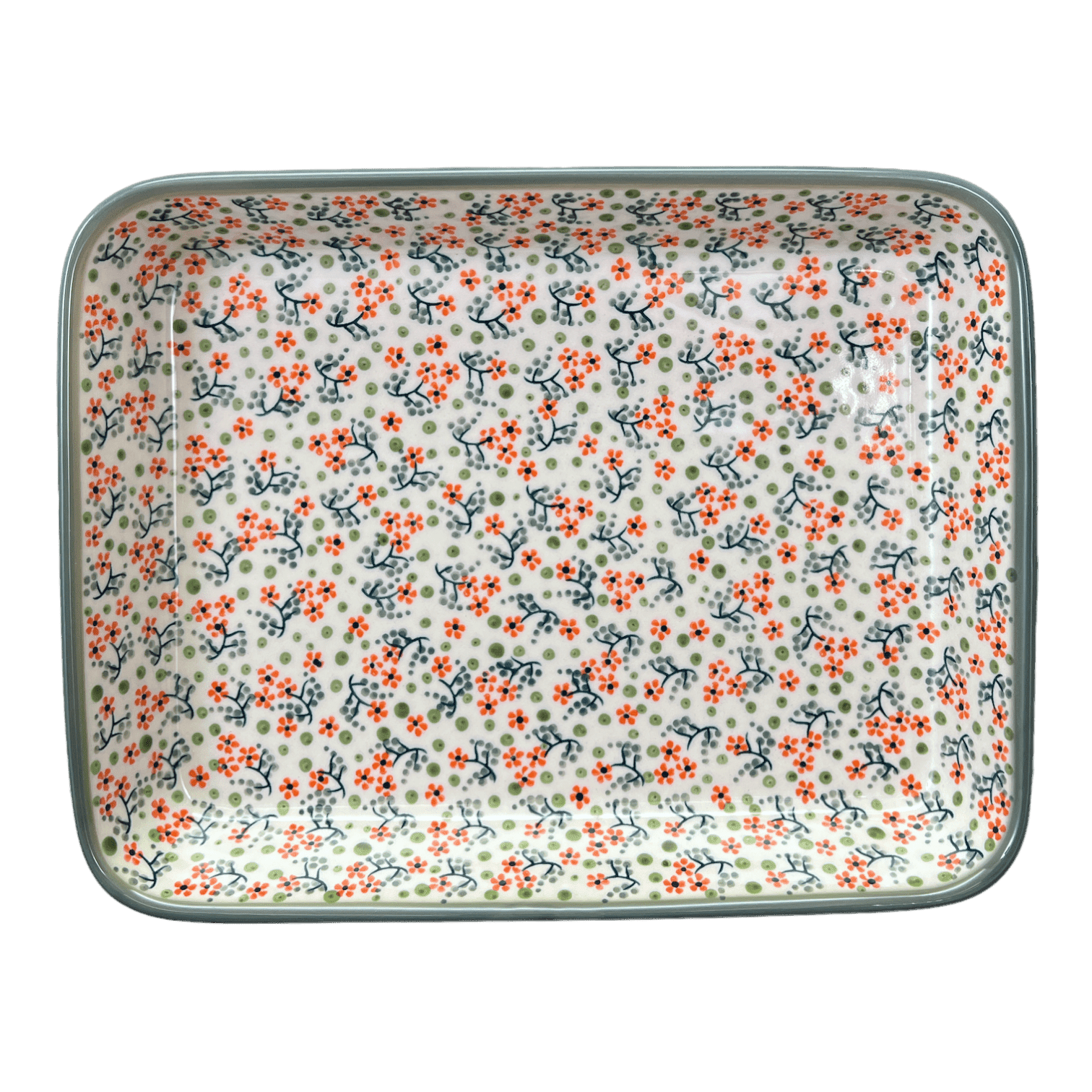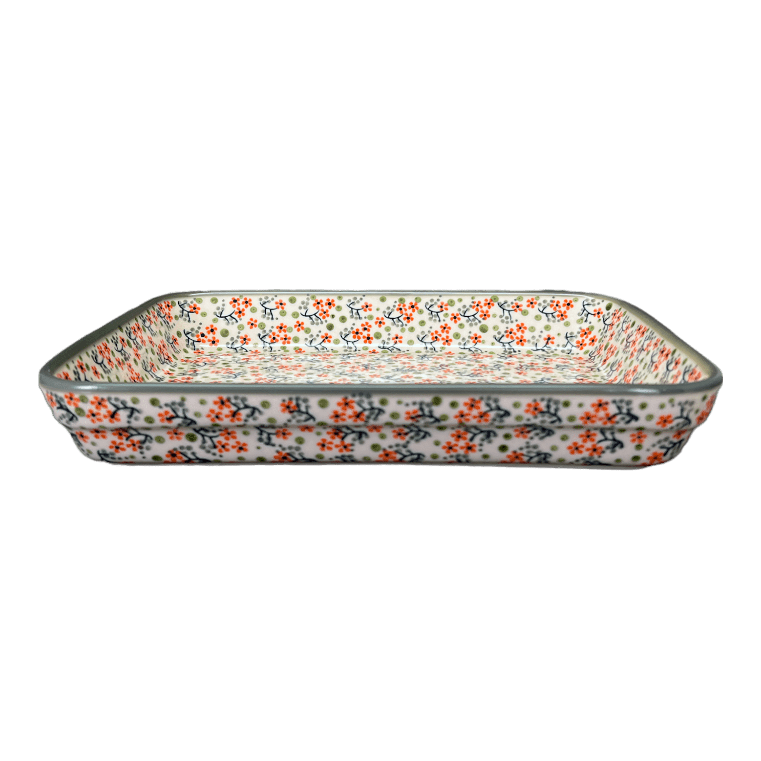 Baker, Rectangular, Shallow, 9" x 11" in "Peach Blossoms - Solid Rim" by Manufaktura | P104S-AS46A is backordered and will ship as soon as it is back in stock.