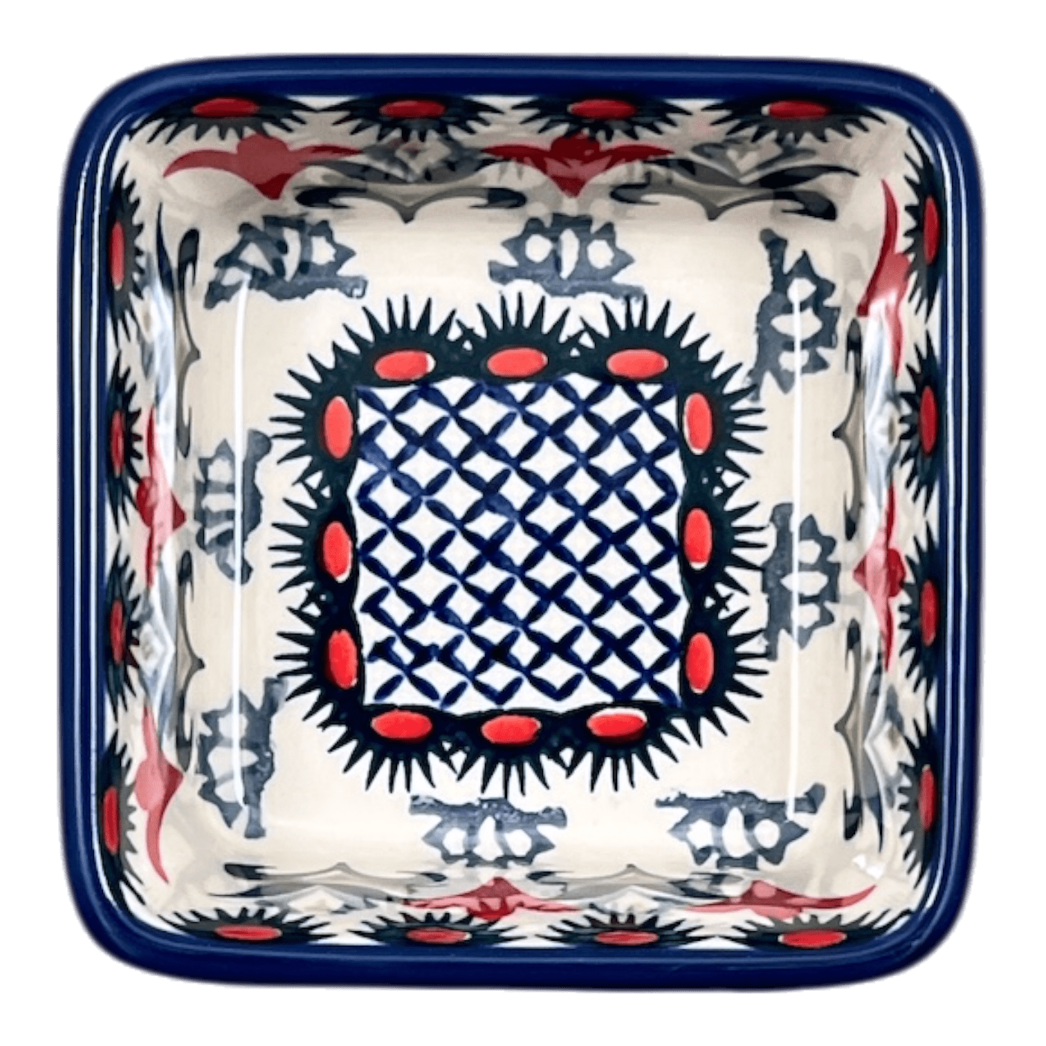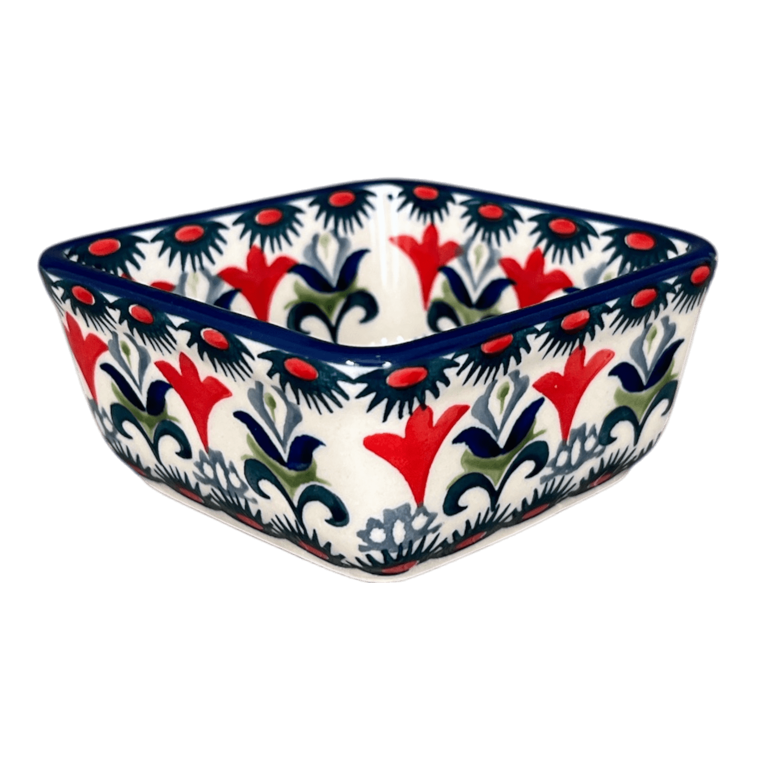 Step into a world of vibrant colors and exquisite patterns with the Polish Pottery 3.5" Square Baker from Manufaktura, adorned in the captivating "Scandinavian Scarlet" design. This delightful piece isn't just a feast for the eyes; it's a versatile powerhouse in the kitchen and beyond. Whether you're whipping up a savory soufflé, crafting an individual dessert, or simply organizing your desk with a stylish post-it note holder, this baker does it all with elegance. Imagine nestling four of these beauties inside the larger 8" x 8" Square Baker for a stunning five-piece set that promises to be the centerpiece of your next dinner party or baking day.