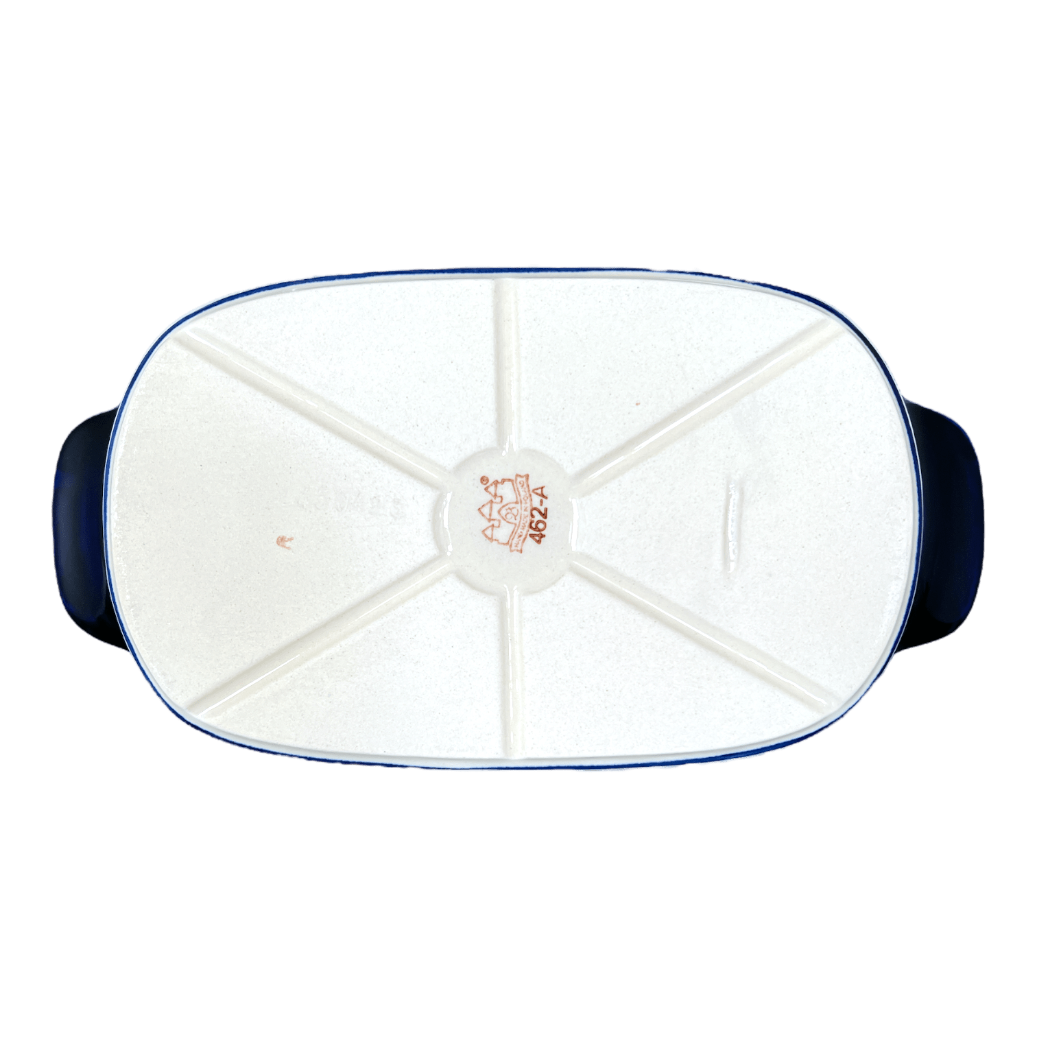 You may safely use Polish pottery in the microwave and in a conventional oven at temperatures up to 425°F. We recommend you heat your stoneware up to temperature with the oven. Make sure to always cover the entire bottom of the dish when baking. For example, you don't want to put a single chicken breast in the center of a baker and leave the rest of the surface area uncovered, as the empty spots will heat at a different rate than those with food on them. Polish pottery does not like quick changes in temperature or uneven heat sources, and thermal shock WILL result in a broken dish.