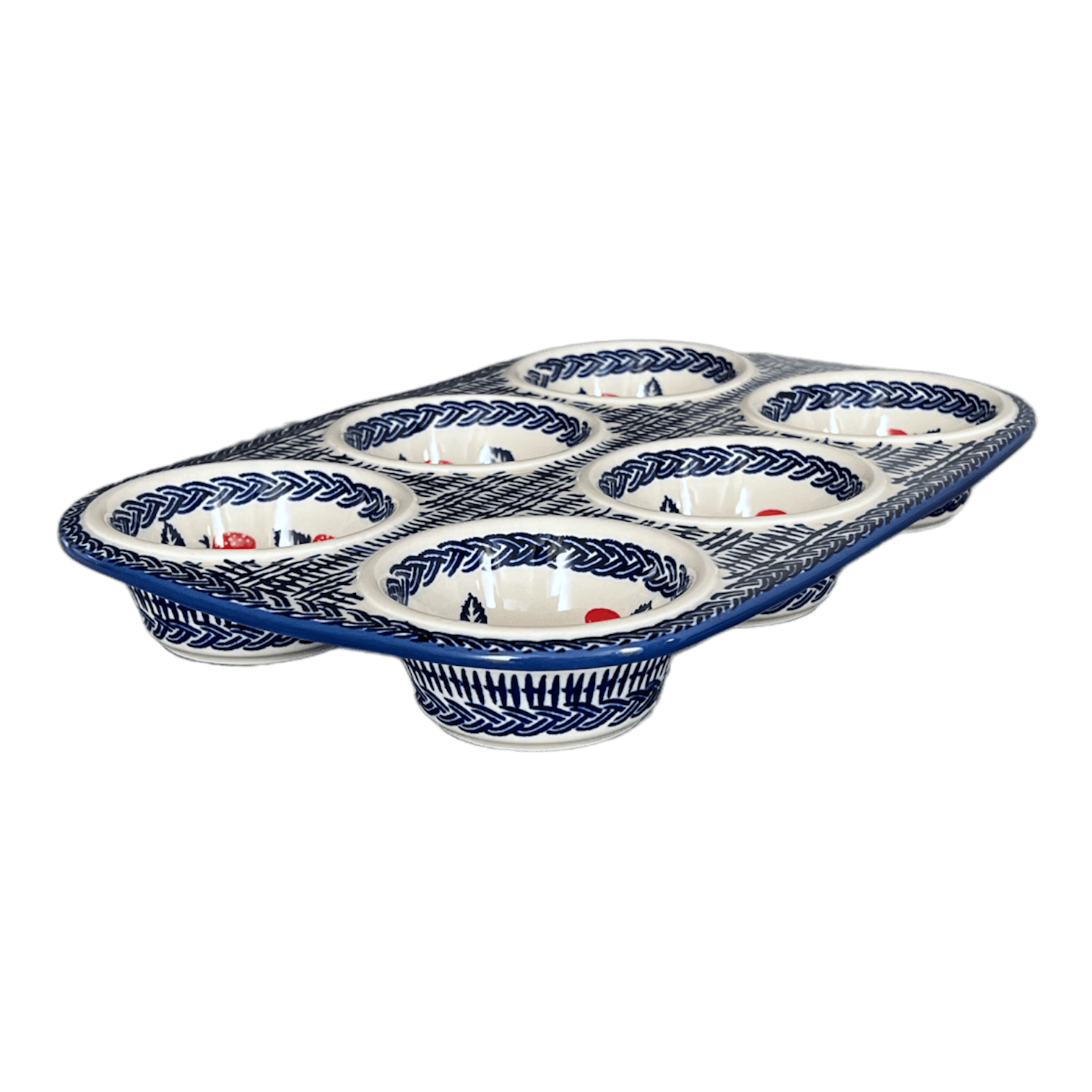 But it's not just about looks - this muffin pan is also incredibly functional. With dimensions of 8.5"x12.5"x1.5"H, it provides the perfect size for muffins, cupcakes, or even individual servings. Made and hand-painted in Boleslawiec, Poland by skilled artisans, you can be assured of the highest quality craftsmanship.