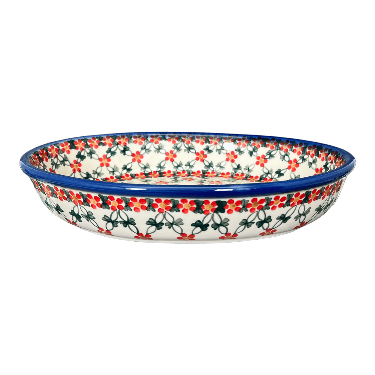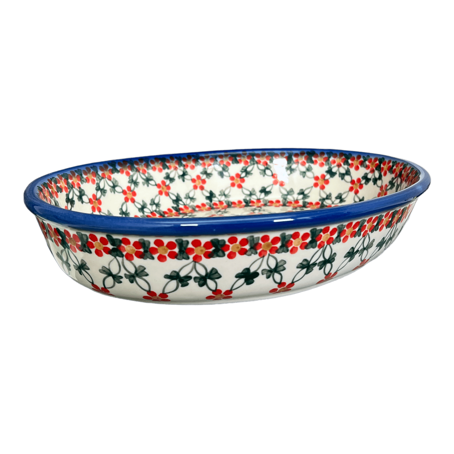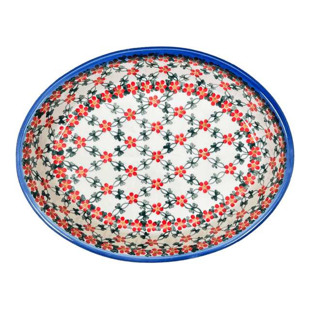 Introducing the stunning Polish Pottery 11.5" x 9" Oval Baker by Andy in the captivating "Red Lattice" pattern! This gorgeous oval baker is not only perfect for all your favorite foods, but its slick high-gloss glaze also makes cleanup an absolute breeze! Say goodbye to those tedious hours spent scrubbing away at stubborn food stains - with this oval baker, you'll have more time to enjoy your delicious creations.