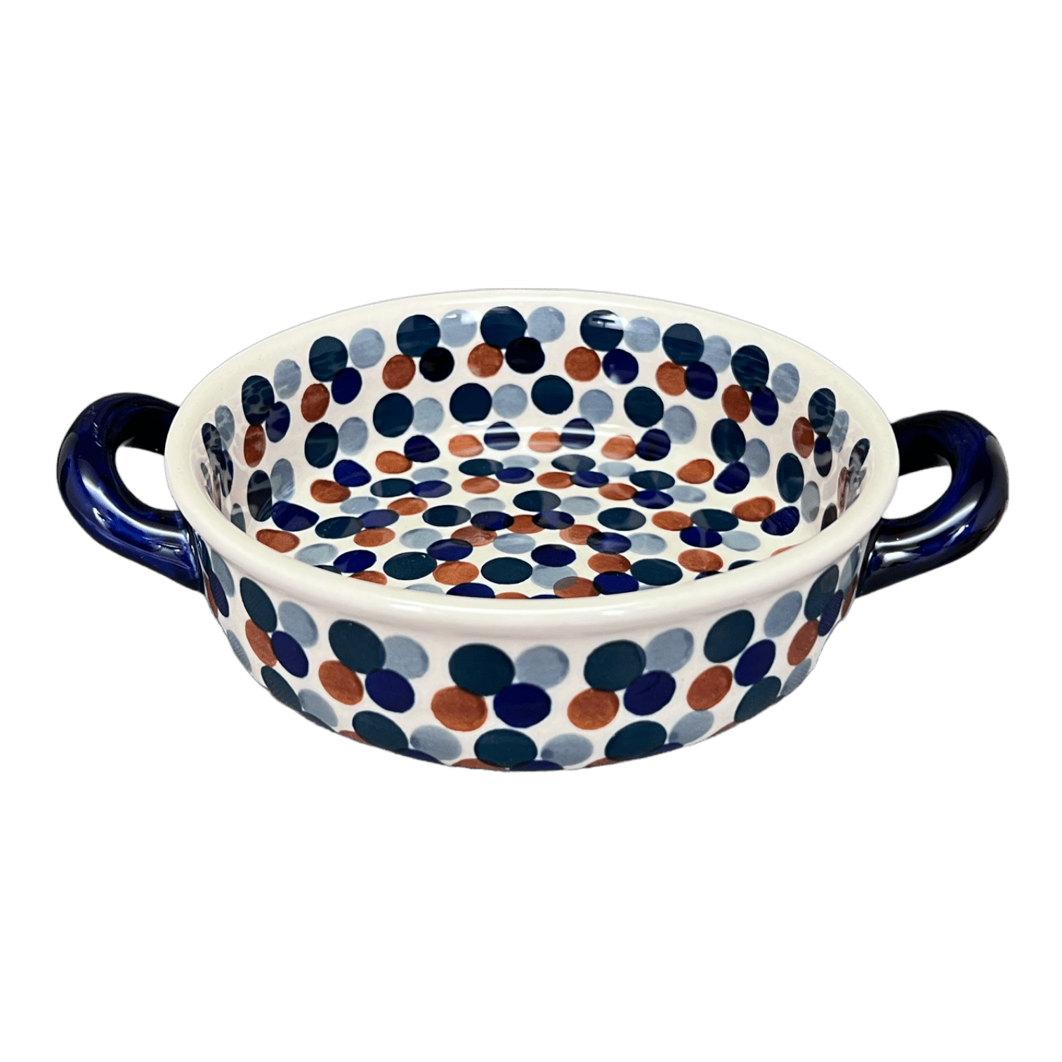 Introducing the Polish Pottery 5" Small Round Casserole W/Handles by Manufaktura in the mesmerizing "Fall Confetti" pattern (BM01). These little dishes are not just your average kitchenware - they are the perfect vessels for hot dips that will leave your taste buds dancing or individual desserts that will satisfy even the sweetest tooth!