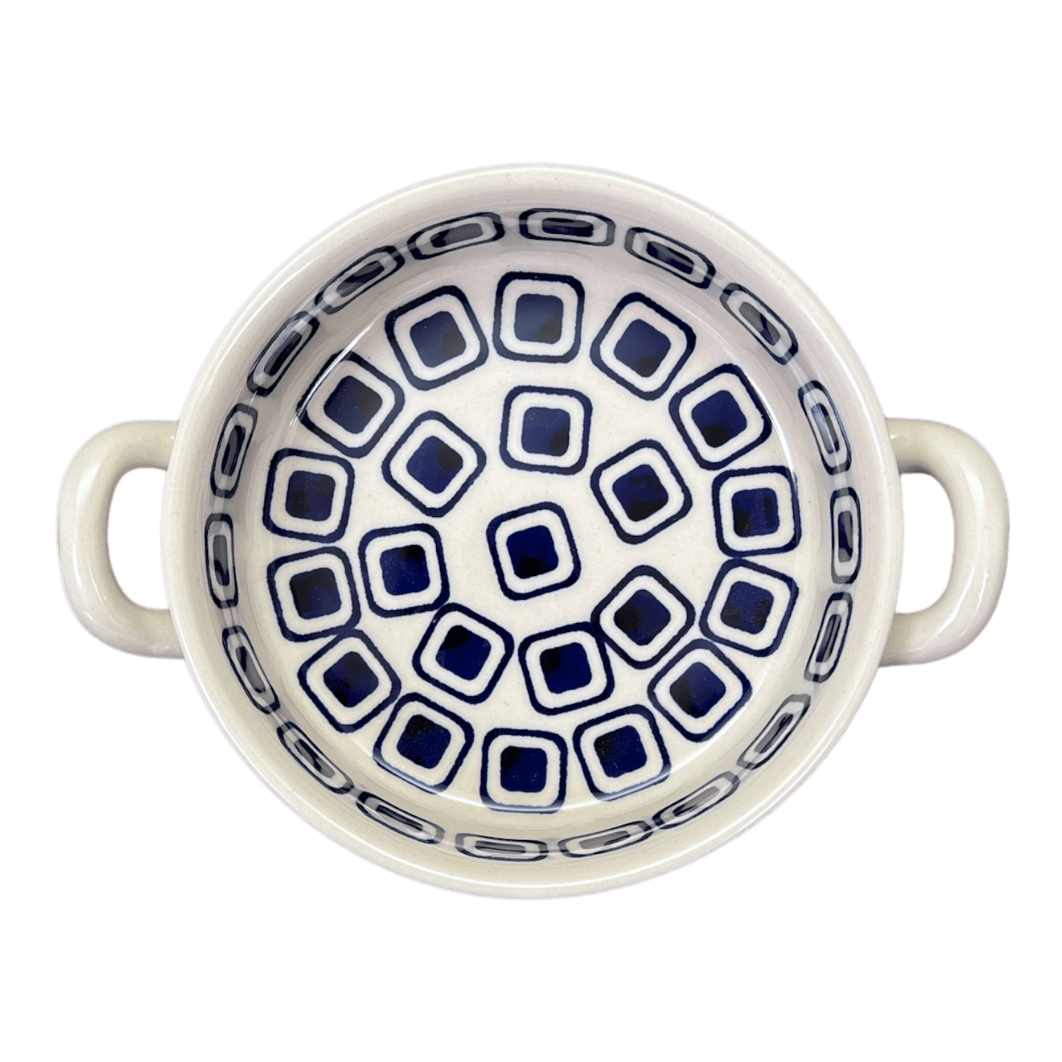 Are you tired of serving your hot dips and individual desserts in boring, plain dishes? Look no further! Introducing the Polish Pottery 5" Small Round Casserole W/Handles by Manufaktura in the eye-catching "Navy Retro" pattern (601A). These small, round dishes are not only perfect for your favorite recipes, but they also add a pop of color and style to your table!