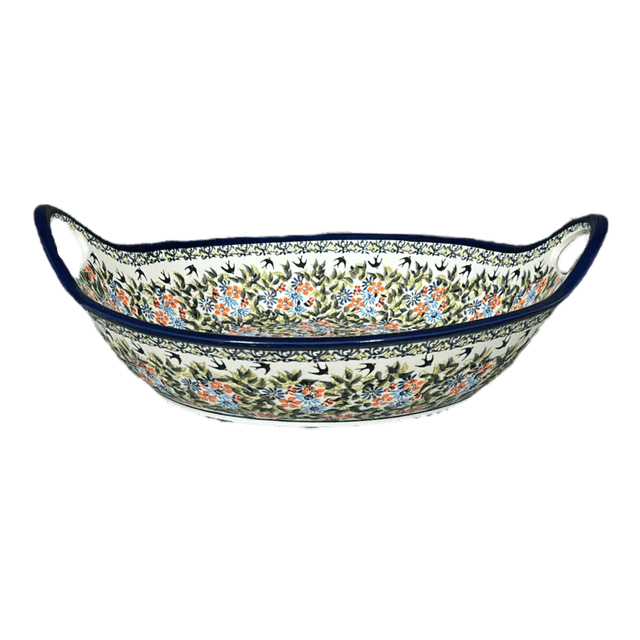 Bowl, Round, Handles, 15" in "Floral Swallows" by Zaklady | Y1348A-DU182