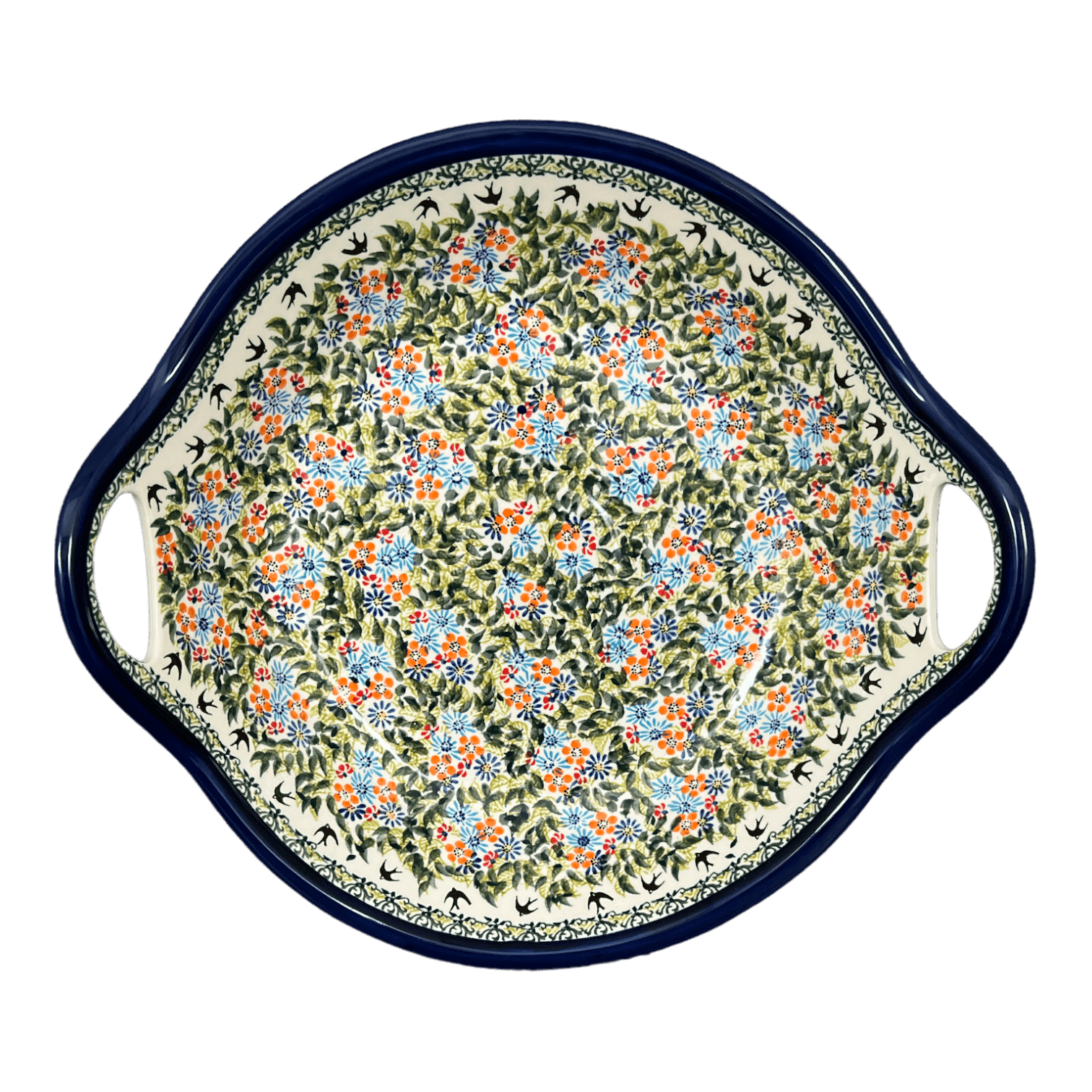 Bowl, Round, Handles, 15" in "Floral Swallows" by Zaklady | Y1348A-DU182 is backordered and will ship as soon as it is back in stock.