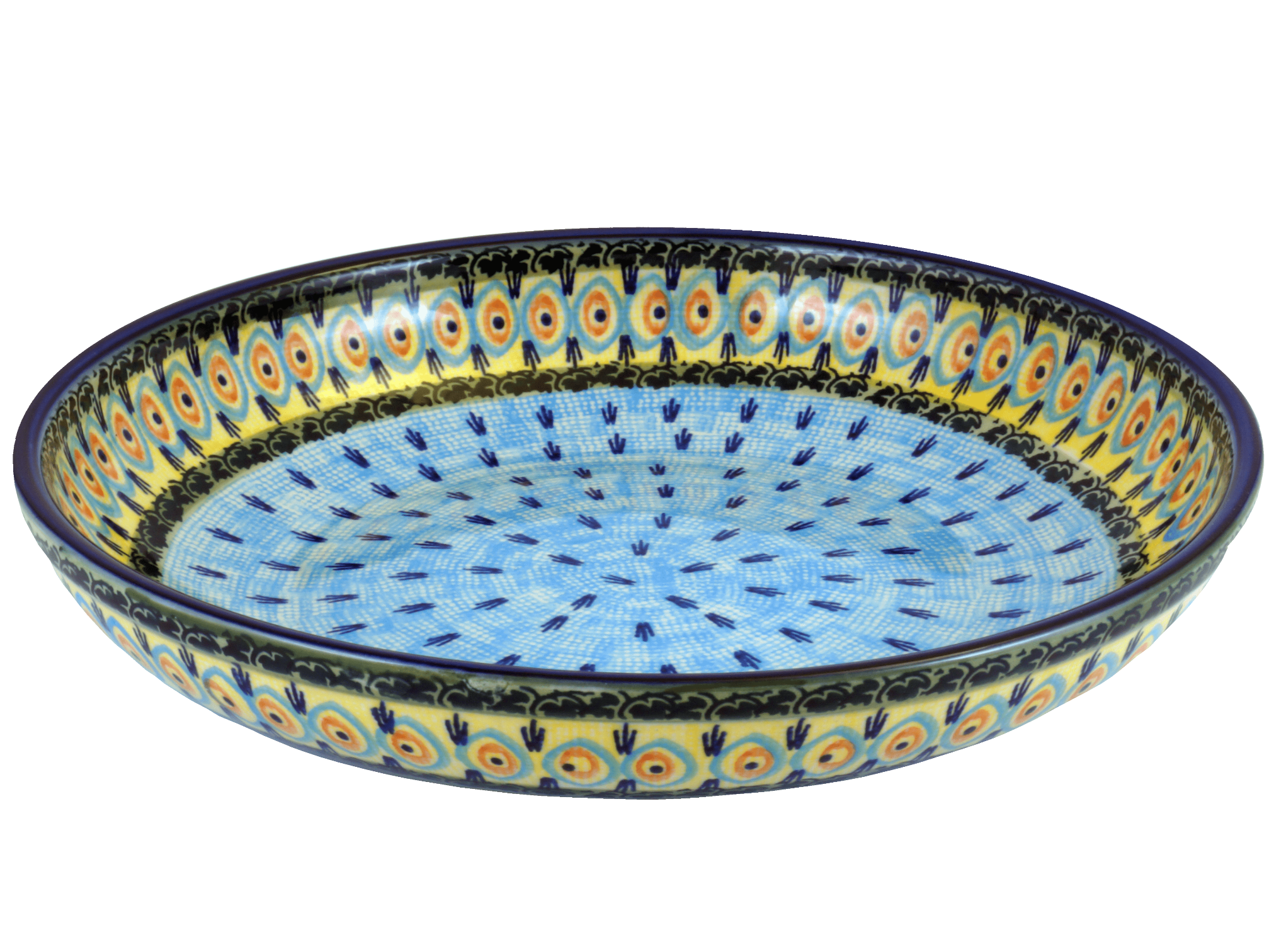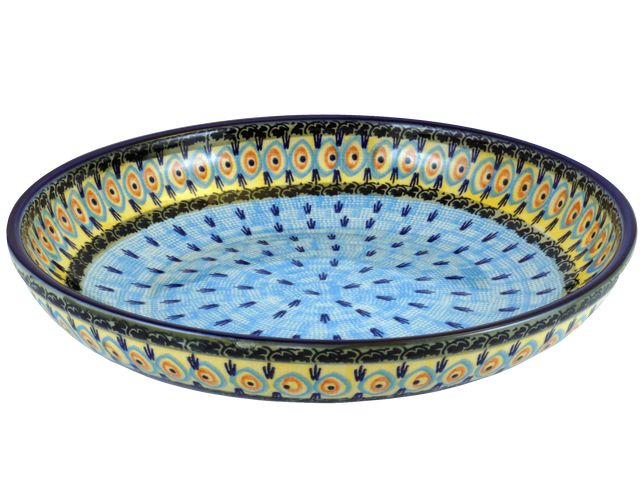 Imagine setting your table with a piece that's not just a bowl, but a work of art. The Manufaktura Polish Pottery Salad Bowl in the captivating "Providence" pattern brings more than just utility; it brings a story to your dinner table. This 11.75" shallow bowl, adorned with the enchanting imagery of peacocks and tufts of grass in a soothing palette of light blue, yellow, and green, transforms every meal into a display of artistic expression. The intricate details and delightful color accents make each serving not just a dish, but a presentation that's bound to garner admiration from your guests.