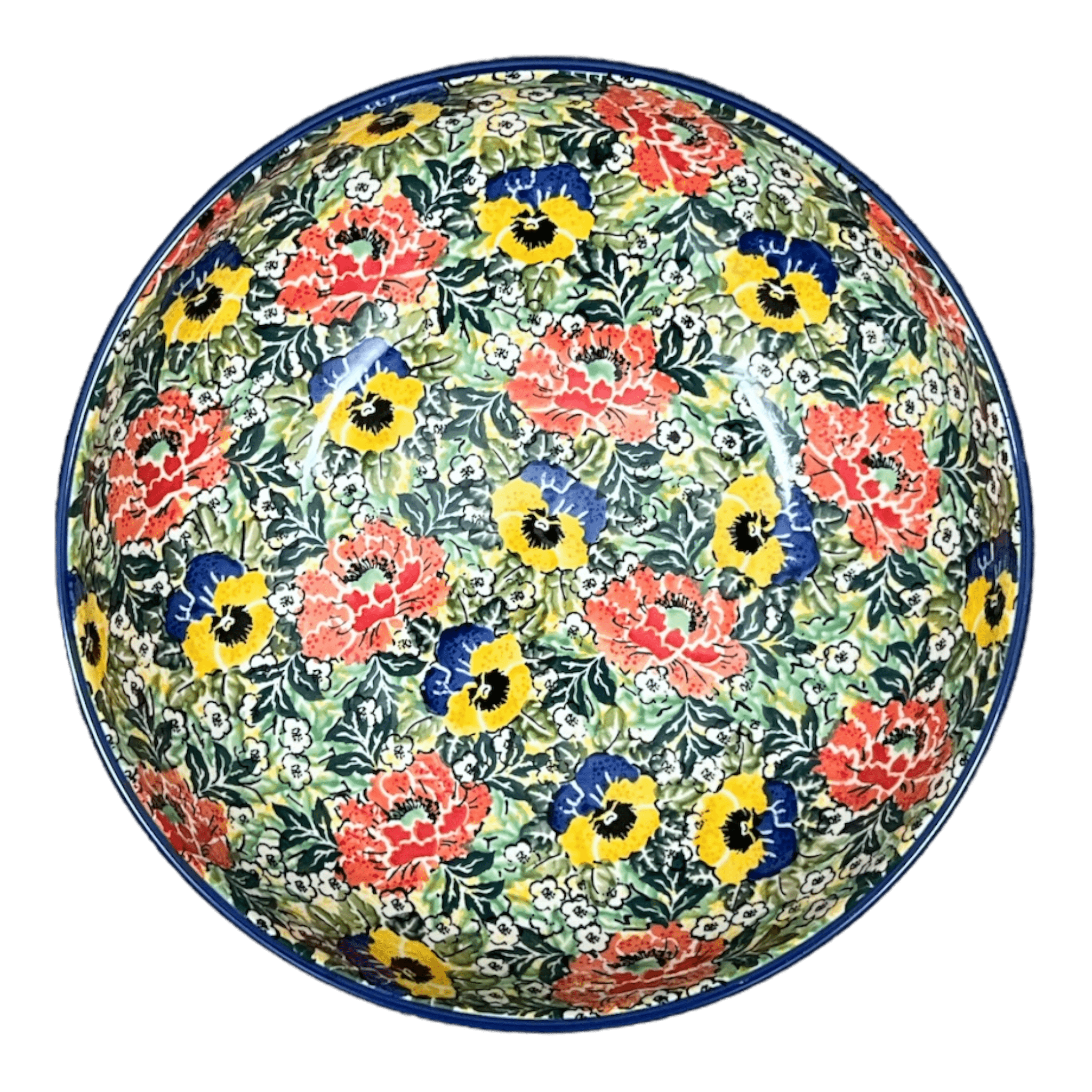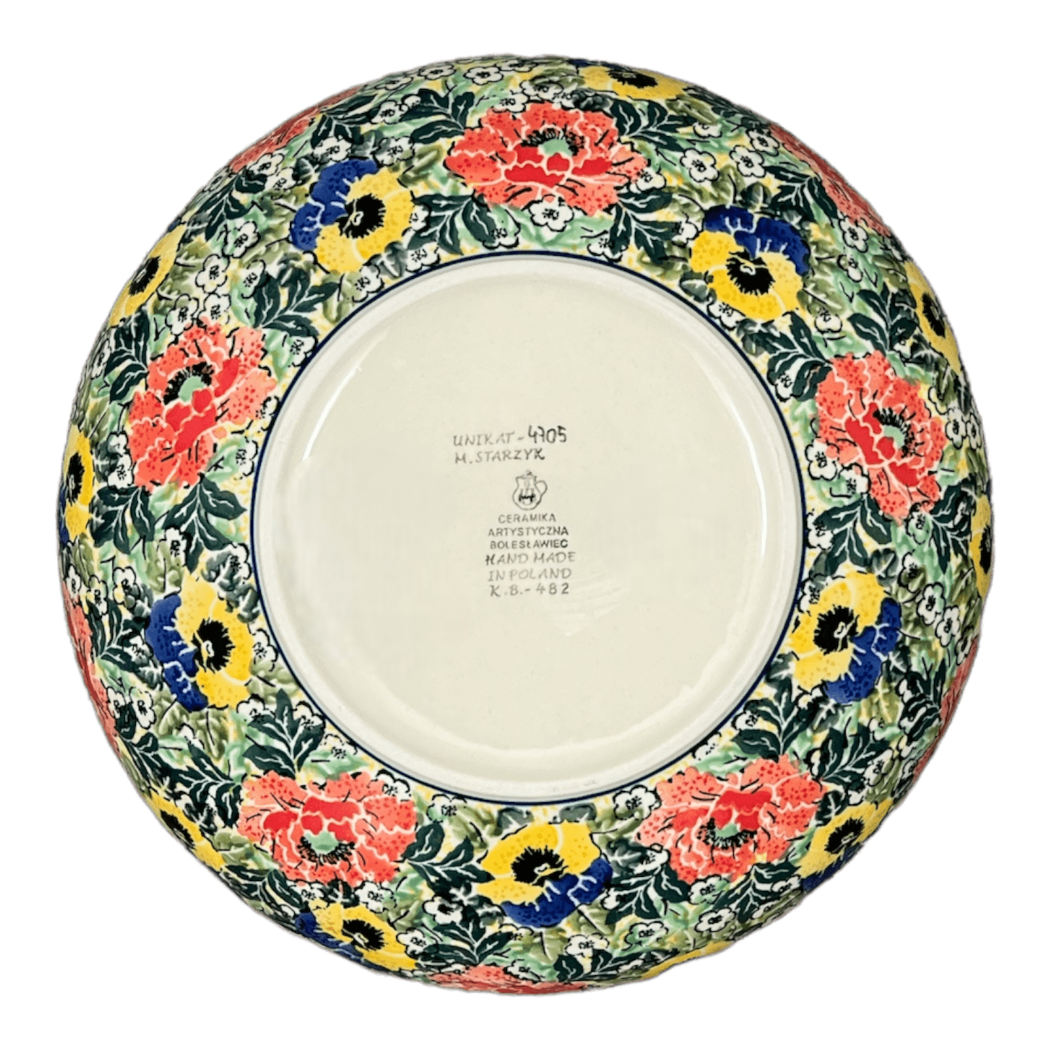 Imagine a centerpiece that not only captivates your guests with its vibrant colors but also tells a story of exquisite craftsmanship—introducing the Polish Pottery Bowl in the "Tropical Love" pattern by Ceramika Artystyczna. This stunning serving bowl, adorned with a lush tapestry of large red, yellow, and blue flowers set against a verdant background of green leaves and delicate white flowers, transforms every meal into a festive occasion. Each 10.5-inch bowl is a canvas showcasing the pinnacle of Polish pottery artistry, designed and meticulously hand-painted by the master artists of Bolesławiec, Poland.