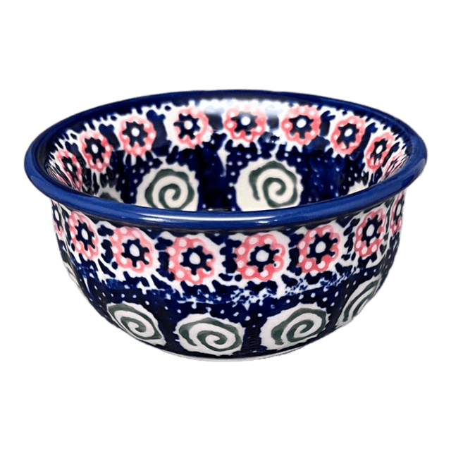 Introducing the Polish Pottery 3.5" Bowl by Manufaktura in the captivating "Carnival" pattern (RWS). This bowl is not just your ordinary ramekin or dipping bowl, it's a work of art that will elevate your dining experience to a whole new level. The "Carnival" pattern is a delightful fusion of geometric designs in a predominantly blue color, with playful accents in pink and green.