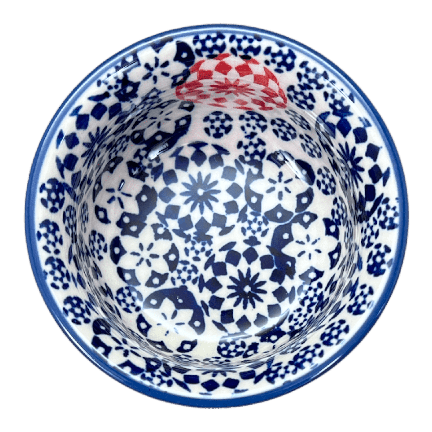 Introducing the Polish Pottery 3.5" Bowl by Manufaktura in the mesmerizing "One of a Kind" pattern (AS77). This little gem is not your average bowl - it's a work of art! Picture this: a gorgeous geometric design in vibrant shades of blue, with pops of red and white accents. It's like a miniature masterpiece that will bring a burst of color and style to your kitchen.