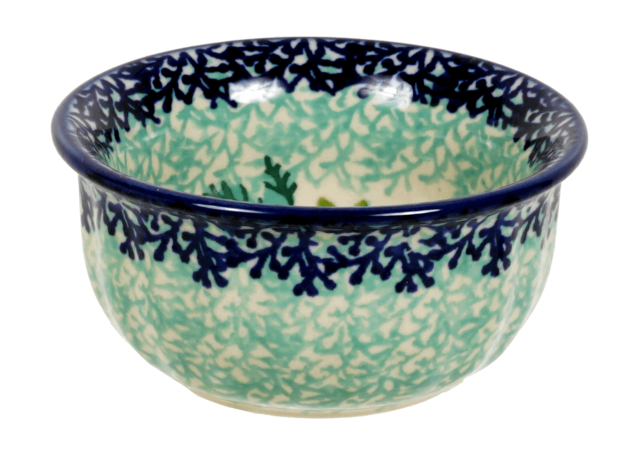 Imagine a splash of vibrant colors and exquisite patterns adorning your dining table. The Polish Pottery Bowl from Manufaktura, in the captivating "Garden Party" pattern, does just that. Measuring a charming 3.5 inches, this bowl is not only perfect as a ramekin or dipping bowl but also a visual delight. Each bowl features delicate, slightly scalloped indentations along its sides, enhancing its handcrafted beauty. The "Garden Party" pattern itself is a celebration of nature, showcasing an array of red, yellow, and blue flowers that dance around a center of light turquoise vines, all set against a crisp white background. This artwork transforms every meal into a festive gathering.