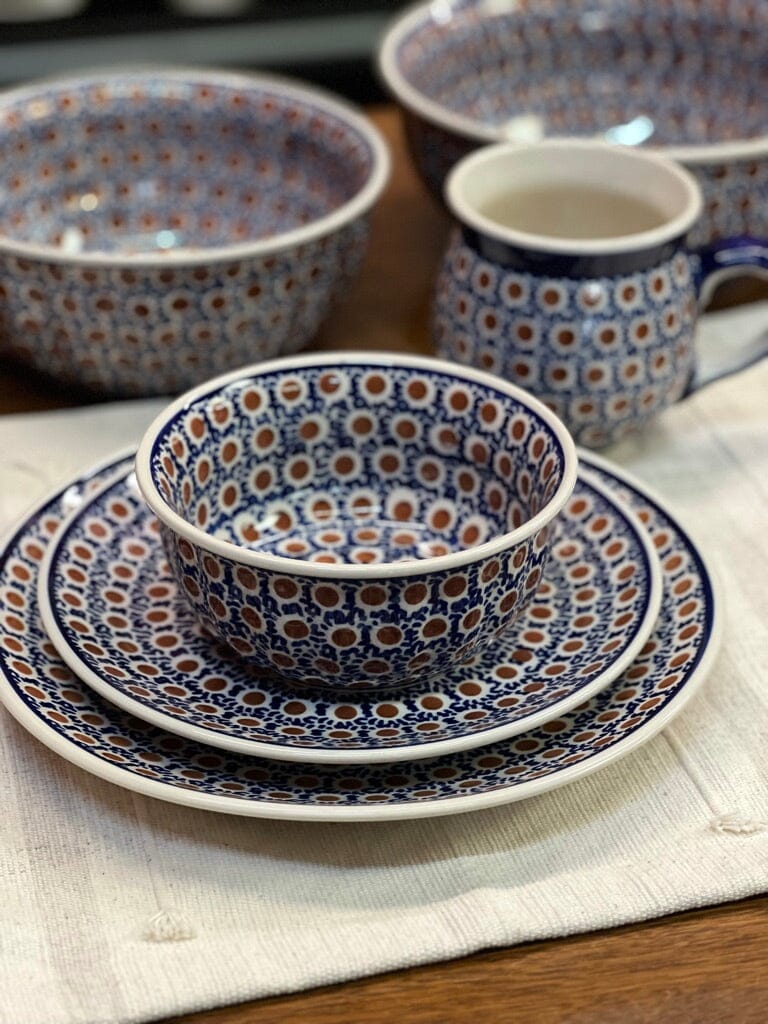 Polish Pottery is not only functional but also incredibly beautiful. It's a fantastic way to add vibrant splashes of color to your home. And the best part? You can mix and match different patterns to create stunning combinations that will leave your guests in awe. Imagine serving your famous spinach and artichoke dip in this exquisite "Chocolate Drop" bowl alongside other pieces from our collection. It's guaranteed to be a feast for both the eyes and the taste buds!