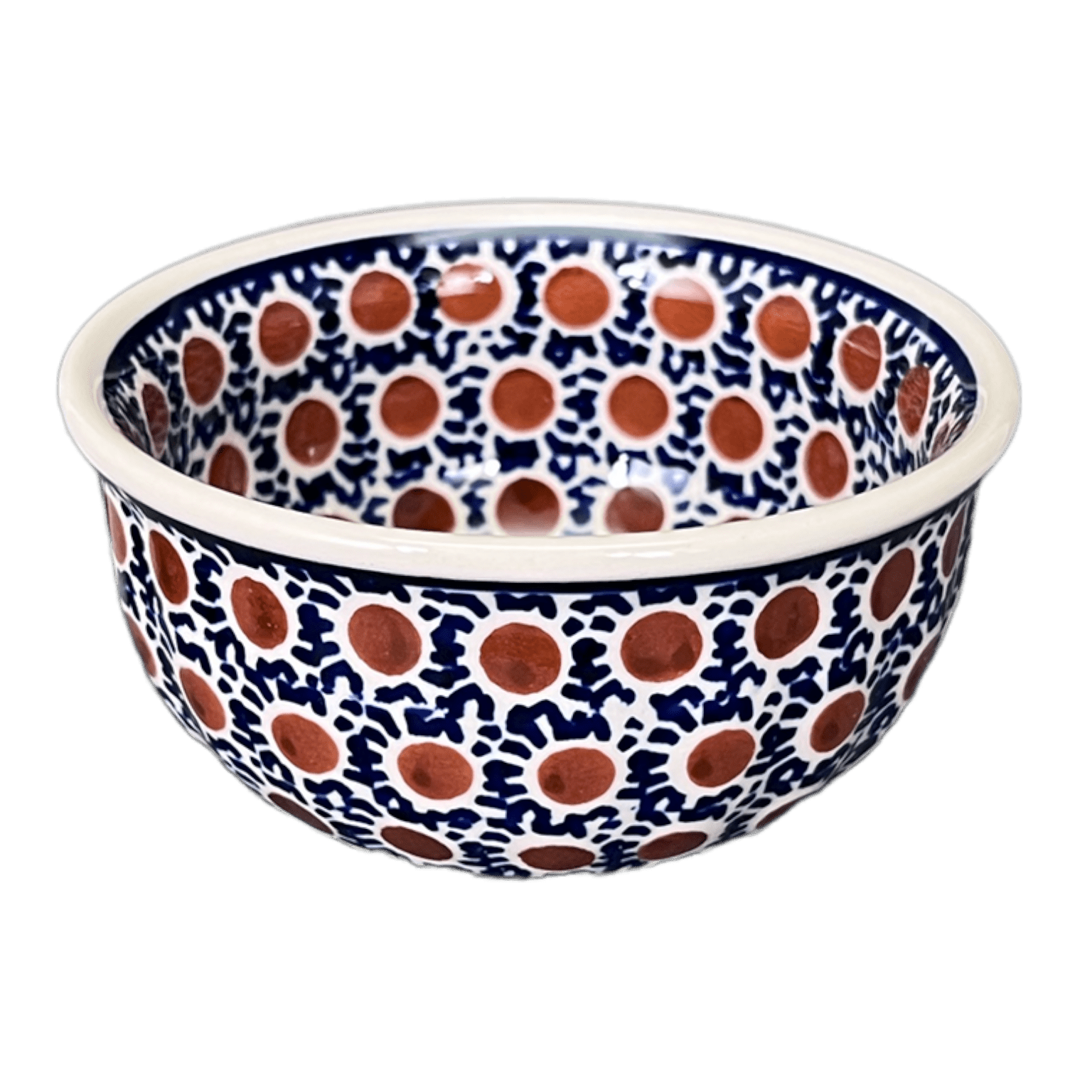 With a capacity and dimensions of 4.5" diameter and 2" height, this bowl can hold up to 10 oz. of your favorite dips and sauces. It's compact yet spacious enough to satisfy all your culinary needs. Plus, it's made and hand-painted in the charming town of Boleslawiec, Poland by skilled artisans. Each piece is a testament to their craftsmanship and attention to detail.