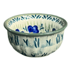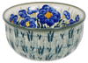 Imagine a splash of vivid colors and intricate patterns that capture the essence of a blooming garden right on your table. That's exactly what the Polish Pottery Bowl from Manufaktura brings into your home! This delightful 4.5" bowl, adorned with the "Bold Blue Blossoms" pattern, is a miniature canvas of artistry. The pattern features a mesmerizing dance of large, detailed blue and yellow flowers with teal green stems that play around a central ring of teal green leaves, all set against a crisp white background. It's not just a bowl; it's a piece of art that promises to transform your dips and condiments into a visual feast!