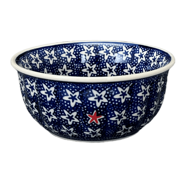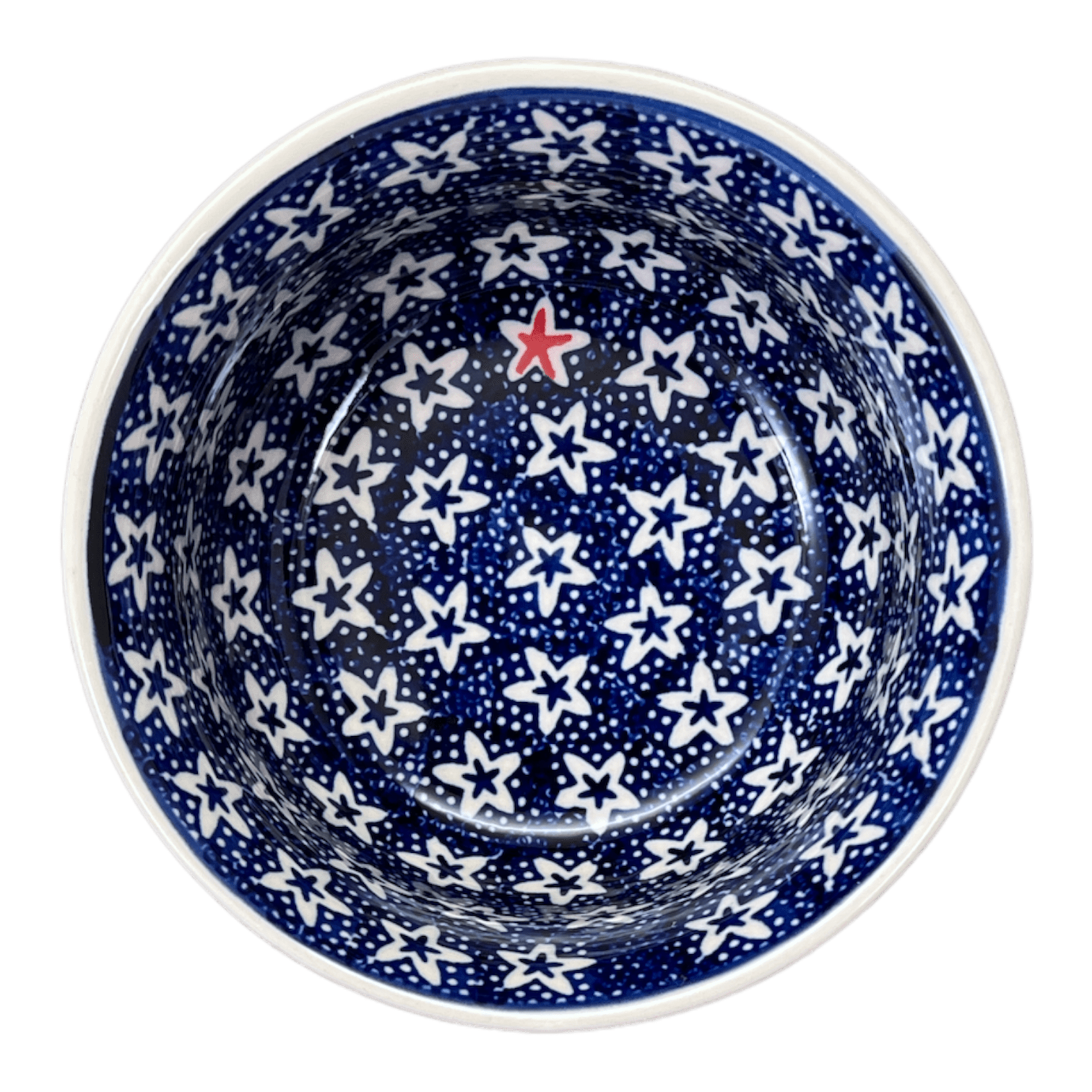 The "Lone Star" pattern is a true showstopper, featuring a mesmerizing design that incorporates stars in a predominantly blue color with accents in white and red. This eye-catching combination is sure to make a statement at your next dinner party or family gathering. Each piece is meticulously made and hand-painted in Boleslawiec, Poland by skilled artisans, ensuring that you receive a product of exceptional quality.
