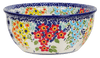 Introducing the enchanting Manufaktura Polish Pottery Bowl from the "Brilliant Garden" collection – a true gem that promises to transform your dining experience! Crafted in the heart of Boleslawiec, Poland, this 5.5" round bowl is a canvas of vivid colors and intricate floral designs. Picture a medley of red, yellow, blue, and cadet gray flowers blooming against a pristine white background, each detail painstakingly hand-painted by skilled artisans. Whether it's a steaming bowl of soup, a refreshing ice cream sundae, or a spicy dip for your chips, this bowl handles it all with flair and finesse.