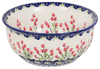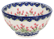 The "Burning Thistle" design is a visual feast, featuring tiny white flowers and dense blue swirls at the center, surrounded by delicate red blossoms and teal green stems. Each piece, painstakingly hand-painted in Boleslawiec, Poland, is a testament to the skill of the artisans who create these stunning works of art. Recognized as a Signature pattern, this bowl carries the "UNIKAT" stamp, signifying that it's not just a dish, but a collectible crafted by artists renowned for their high-level artistry. The joy of owning such a piece is knowing that it's both a functional item and a treasure that holds the touch of a master artist's hands.