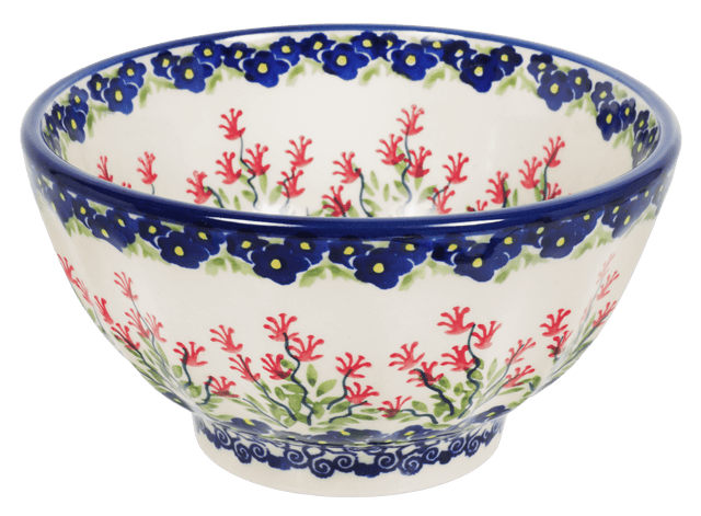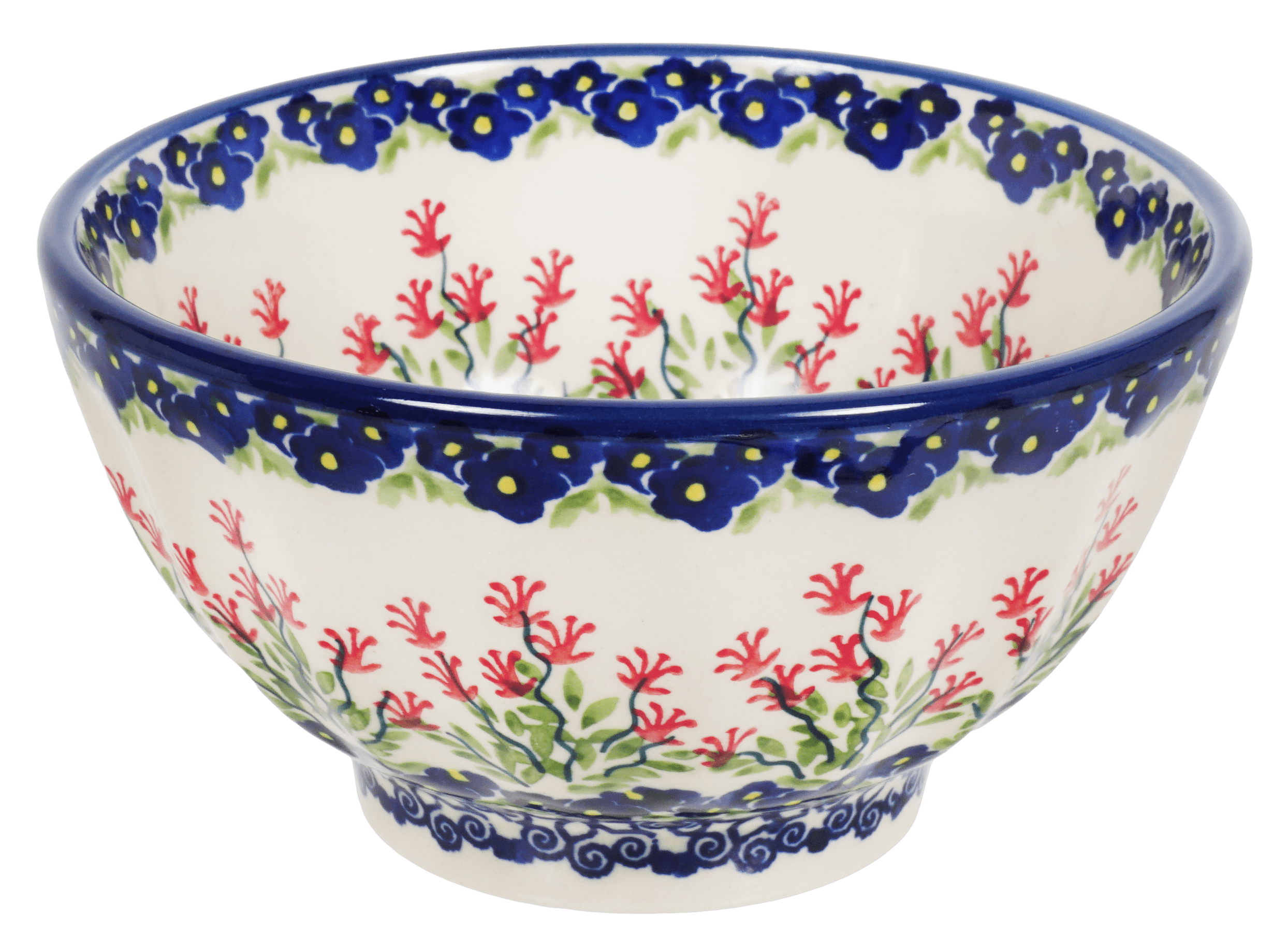 Imagine a table adorned with the enchanting "Burning Thistle" pattern of a Polish Pottery Bowl by Manufaktura. Not just any bowl, but a masterpiece of craftsmanship that brings the heart of Poland's artistic heritage right to your dining room. This 5.5" round, fancy bowl isn't just for show; it's a versatile charmer ready to cradle everything from your steamy morning oatmeal to that late-night ice cream indulgence. The bowl's elegant ridges and vibrant colors make each meal an occasion, while its sturdy pedestal base ensures it stands proudly among any table setting.