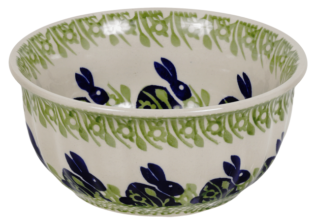 Introducing the Polish Pottery 5.5" Bowl by Manufaktura in the delightful "Bunny Love" pattern (P324). This versatile bowl is not just your ordinary kitchenware - it's a vessel of endless possibilities! Perfect for soups, cereal, ice cream, side salads, or individual desserts, this bowl is sure to become your go-to for all your favorite treats.